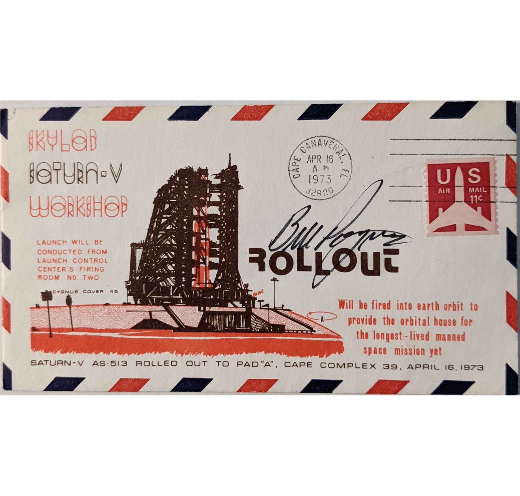 Bill Pogue Signed Saturn V First Day Cover. Cape Canaveral, FL April 16 1973. 7x4 inches