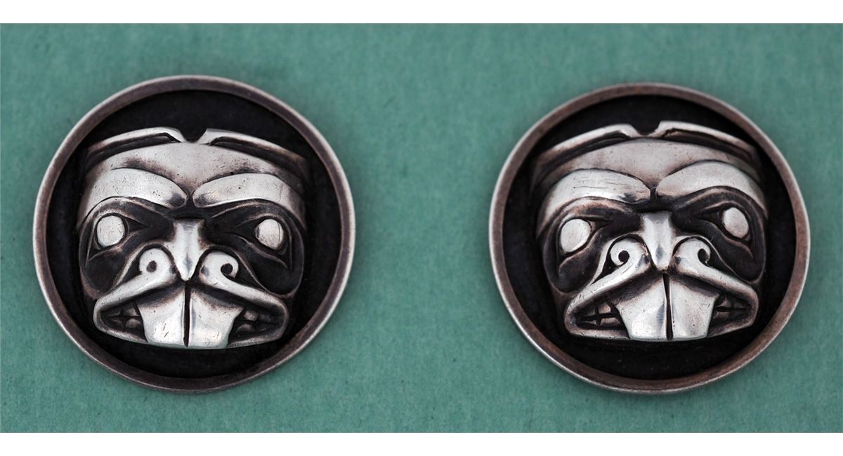 Bill Reid Silver Cufflinks, Beaver Design and Signed Haida Art Reid 1" D. Fine Condition