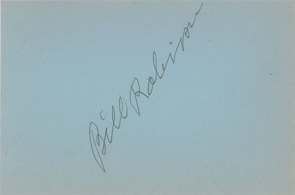 Vintage pencil signature, “Bill Robinson,” on a light blue 6 x 4 album page. In fine condition, with light toning to the borders.