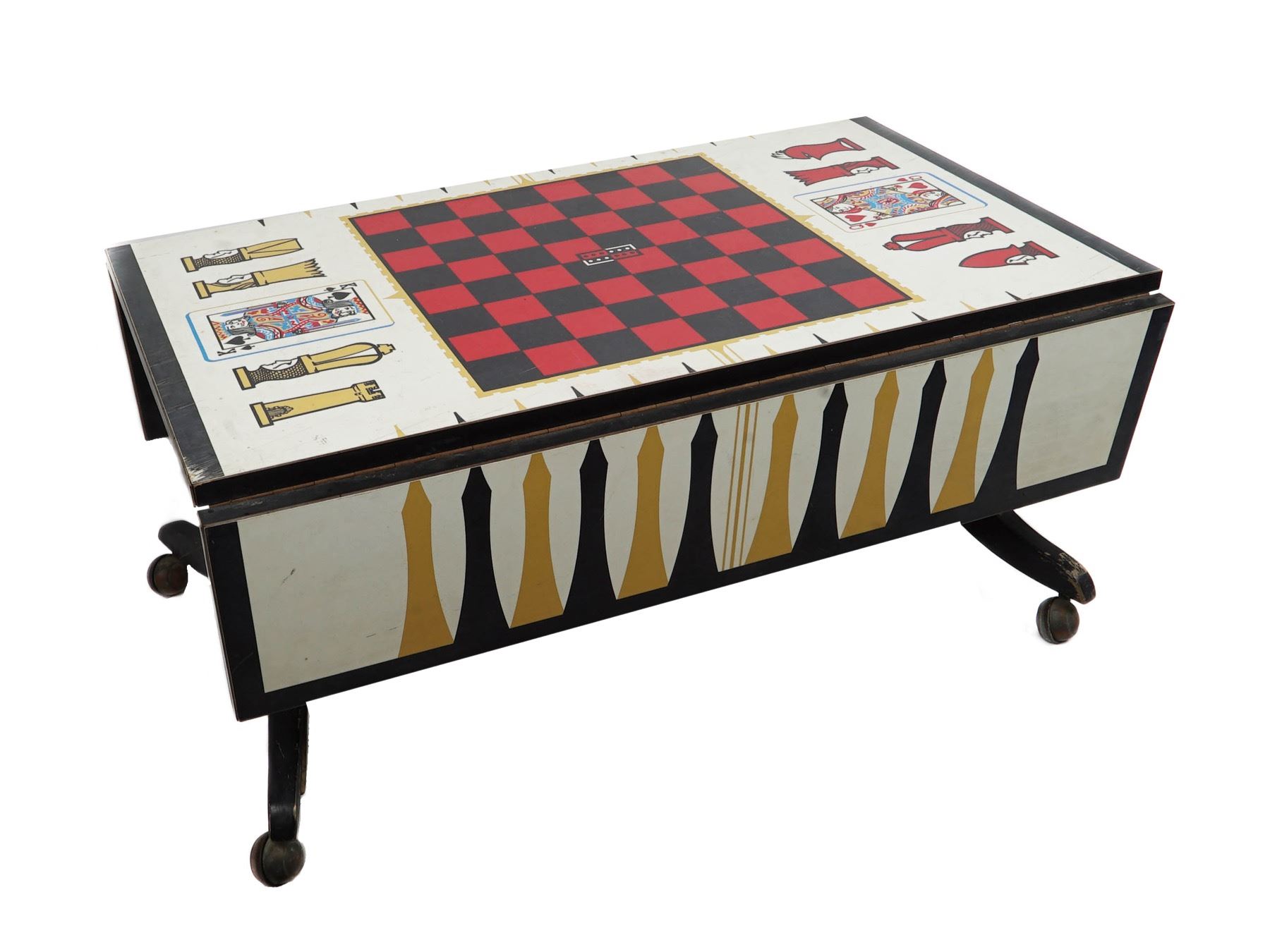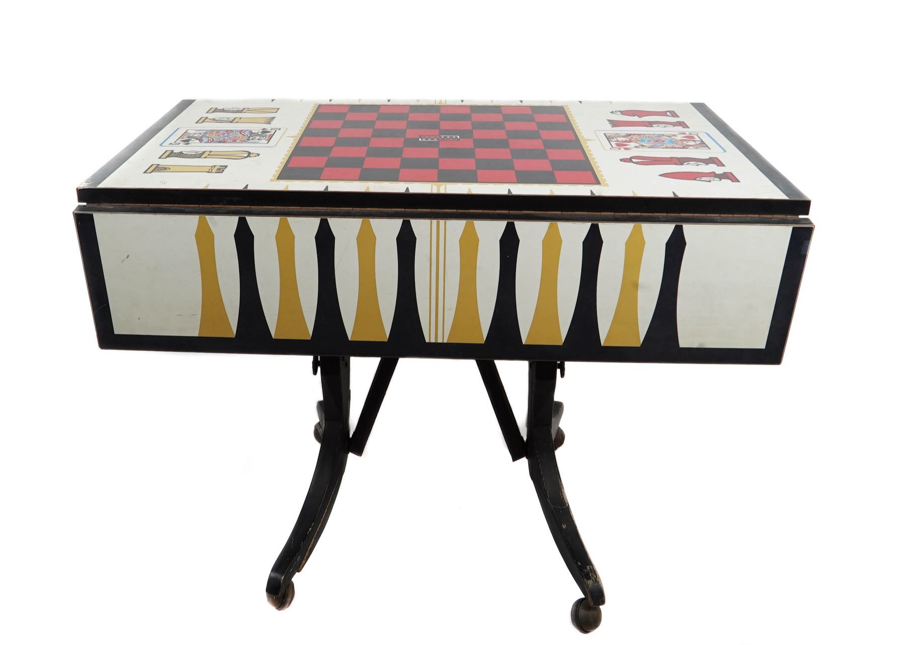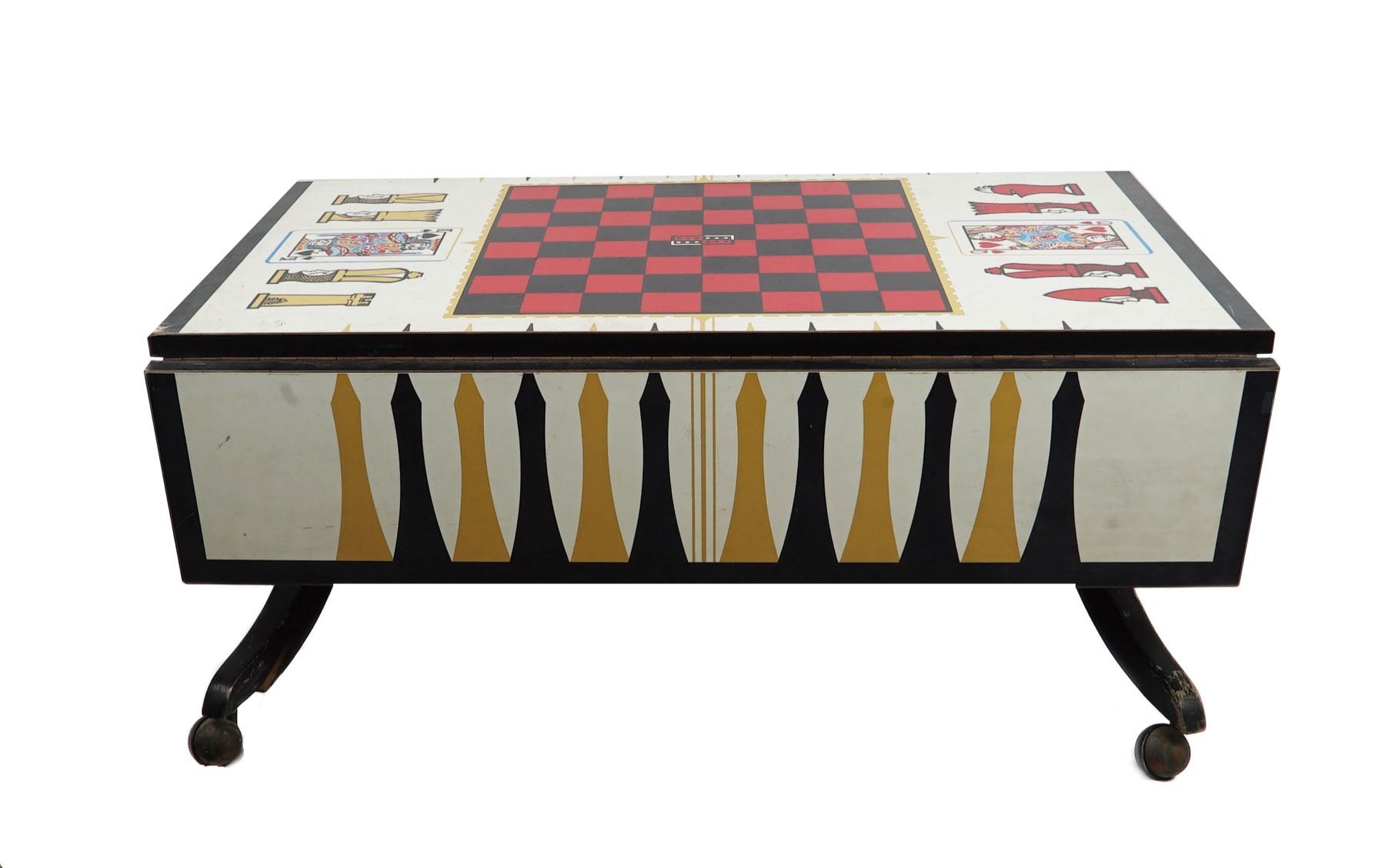 "Magic" table used as set decoration inn "Death's" house in the 2020 comedy sci-fi film Bill & Ted Face the Music. Once told they'd save the universe during a time-traveling adventure, 2 would-be rockers from San Dimas, California find themselves as middle-aged dads still trying to crank out a hit song and fulfill their destiny. This is a vintage style magic table and is made of wood with a beautiful top featuring foldable extensions. The table legs extend and retract via a hidden mechanism underneath. This piece is large and will require special shipping. This item remains in excellent, production used condition.