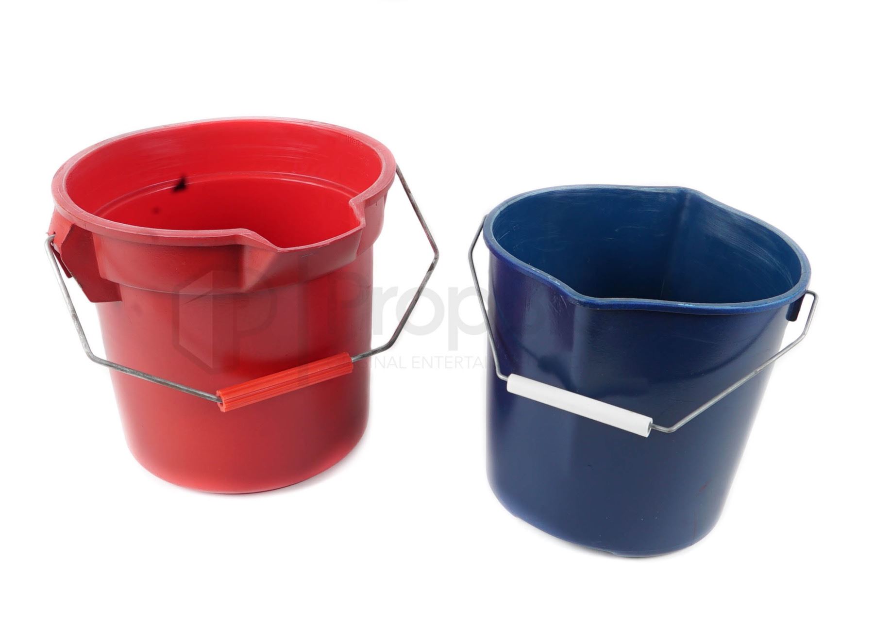 These buckets were marked stunt by the production and were used in the scene where Bill & Ted have them on their heads as they fall out of the mansion window onto the ground below. Both buckets are made of plastic with a metal handle and are red and blue in color. This set remains in excellent, production used condition.
