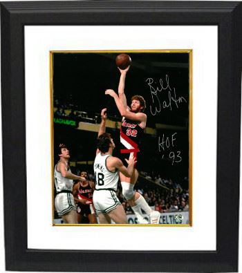 Bill Walton had a prominent career in the NBA where he was a league Most Valuable Player (MVP) and won two NBA championships. Walton was inducted into the Naismith Memorial Basketball Hall of Fame on May 10, 1993. Bill Walton has hand signed this Portland Trail Blazers 16X20 Photo with HOF 93 inscription. MAB Hologram and Certificate of Authenticity from Athlon Sports. Custom White Mat and Premium Black Color Framed as shown.