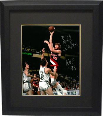 Bill Walton had a prominent career in the NBA where he was a league Most Valuable Player (MVP) and won two NBA championships. Walton was inducted into the Naismith Memorial Basketball Hall of Fame on May 10, 1993. Bill Walton has hand signed this Portland Trail Blazers 8x10 Photo with HOF 93 inscription. MAB Hologram and Certificate of Authenticity from Athlon Sports. Custom Black Mat and Premium Black Color Framed as shown.