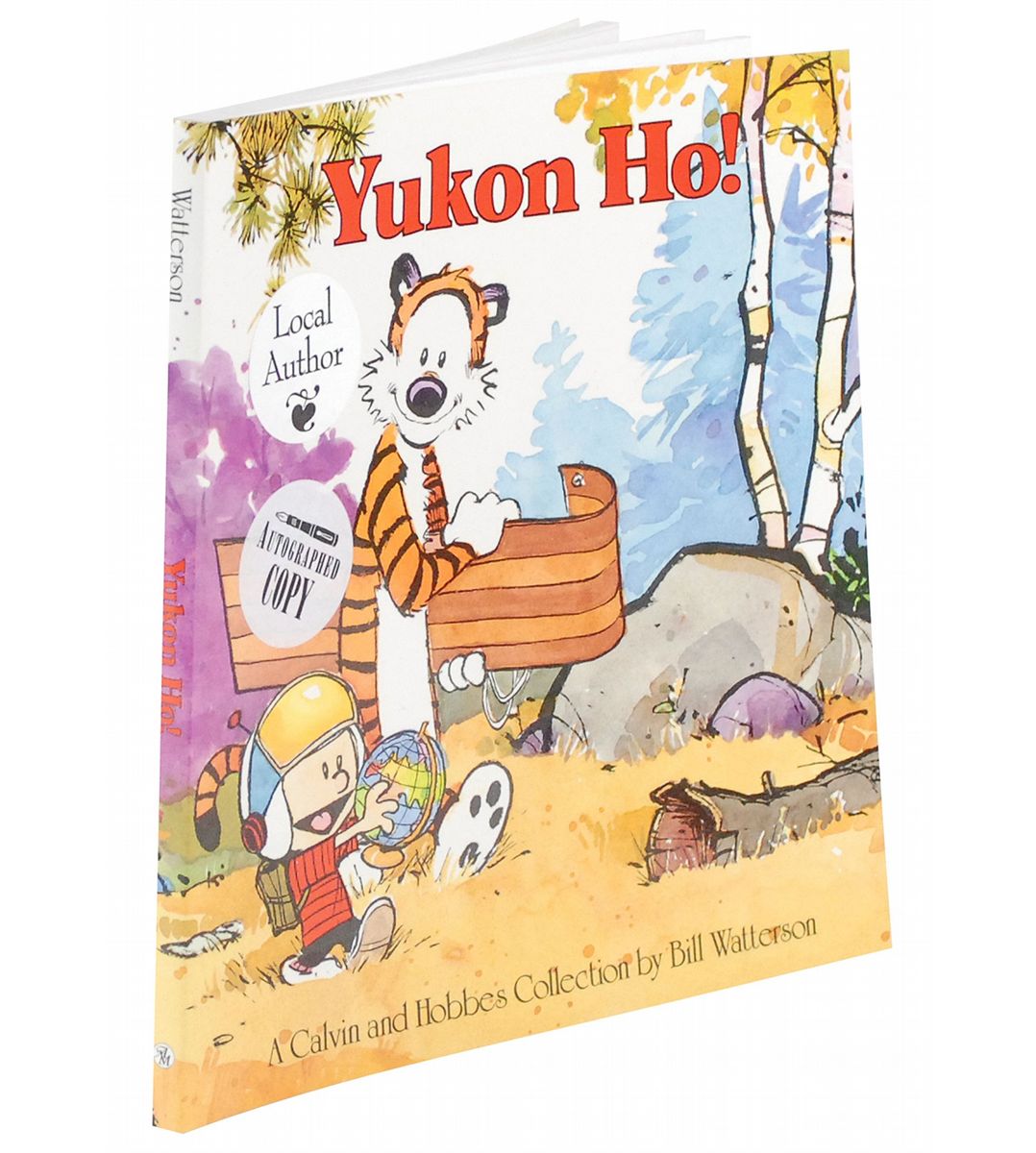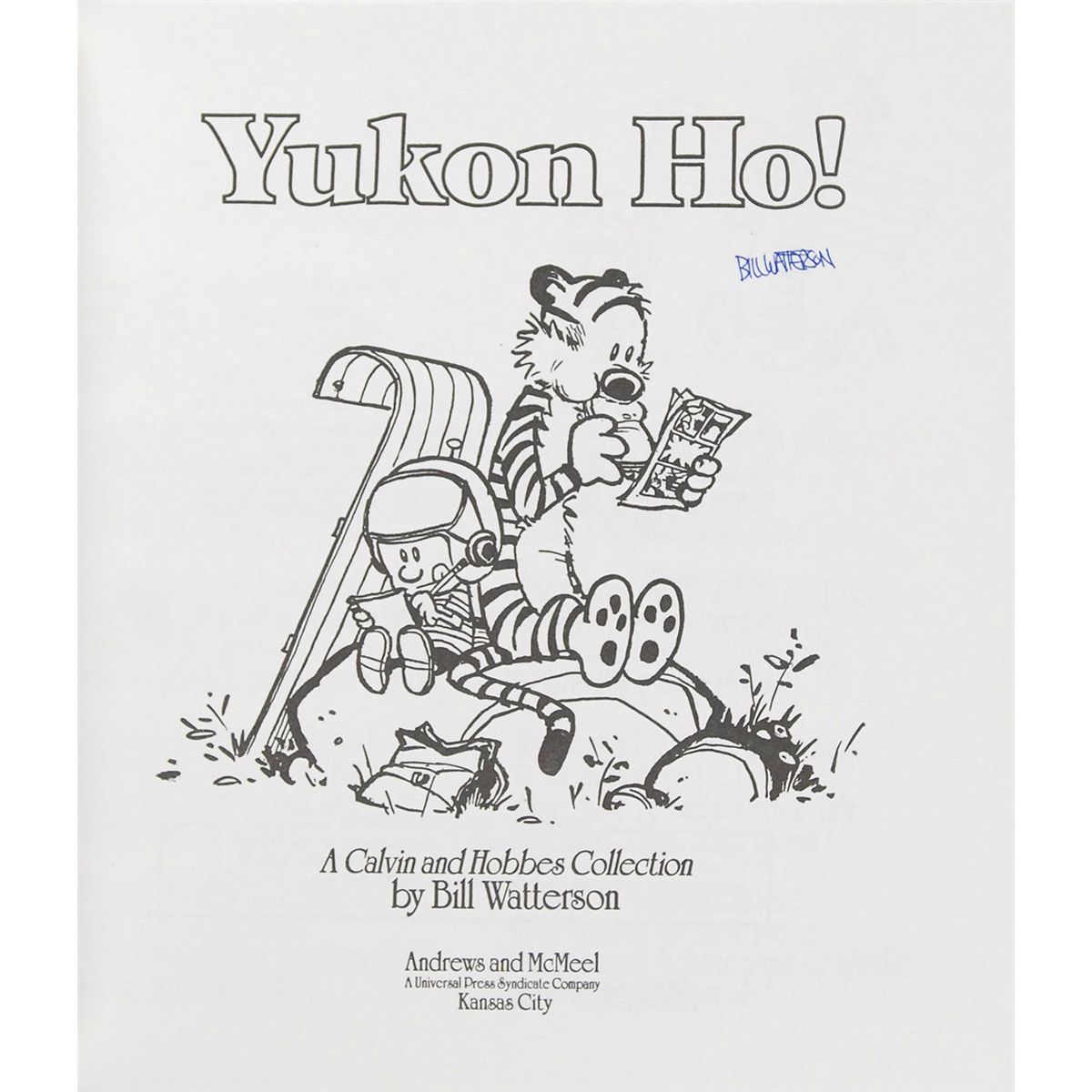 Scarce signed book: Yukon Ho!. Later printing. Kansas City: Andrews and McMeel, 1989. Softcover, 8.5 x 9, 126 pages. Signed on the title page in blue felt tip. In fine condition, with two bookstore labels affixed to the cover.