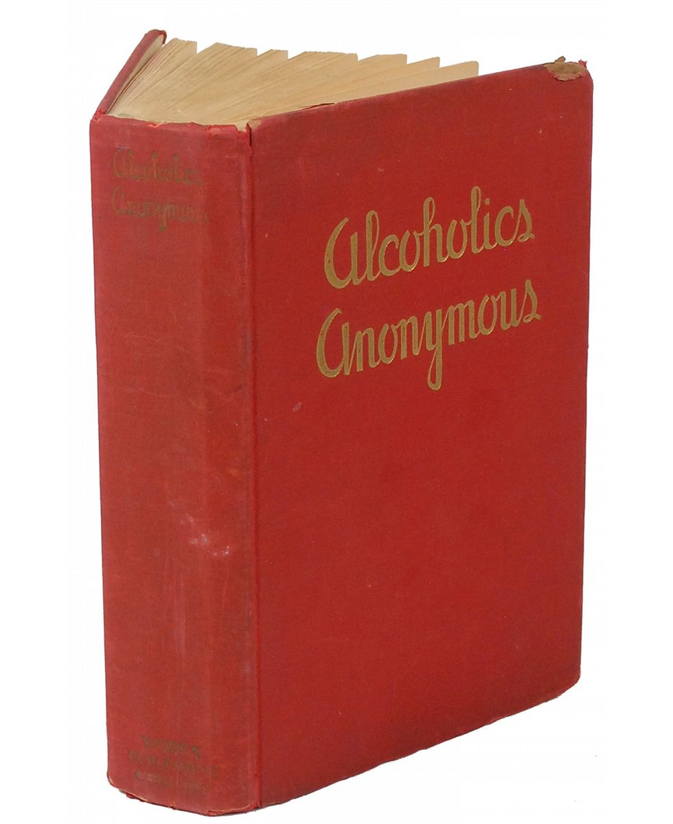 Unsigned book: Alcoholics Anonymous. First edition, first printing. NY: Works Publishing Company, 1939. Hardcover, 6.25 x 9.25, 400 pages. Book condition: G+/None. Red cloth-covered boards with gilt titles; edges heavily worn, with tears in cloth and boards exposed in several places; spine sunned; rubbing and moderate soiling to exterior; front hinge split at title-page; couple other interior hinges cracked; textblock edges and endpapers yellowed; previous owner’s inscription to front pastedown. A title that has changed millions of lives, first printings of this book are incredibly hard to find and highly sought-after.