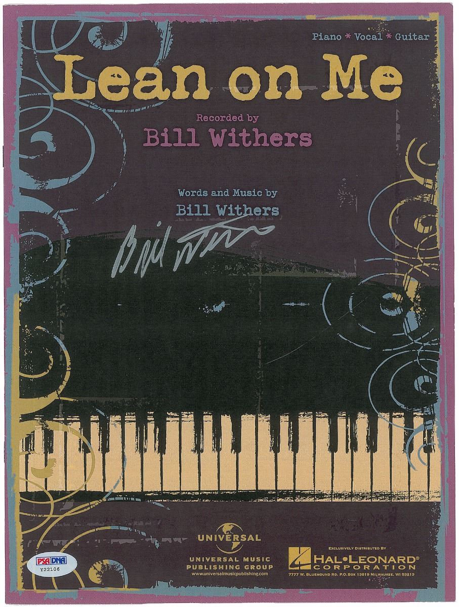 Sheet music for ‘Lean on Me,’ 9 x 12, nine pages, signed on the front cover in silver ink. In fine condition, with a PSA/DNA label affixed to the lower left corner.