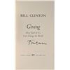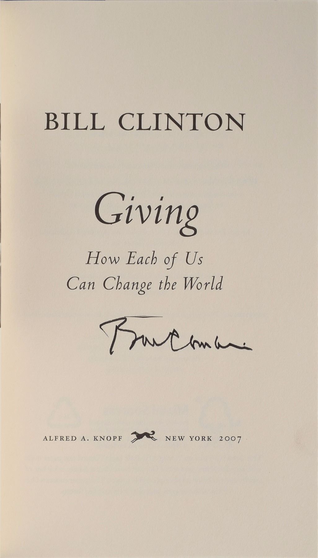 Two books: a first edition of Giving, hardcover with dust jacket, signed on the title page in black ink, "Bill Clinton"; and a first edition of An Invitation to the White House, hardcover with dust jacket, signed on an opening page in black felt tip, "Hillary Rodham Clinton, 12/2000." In overall fine condition.