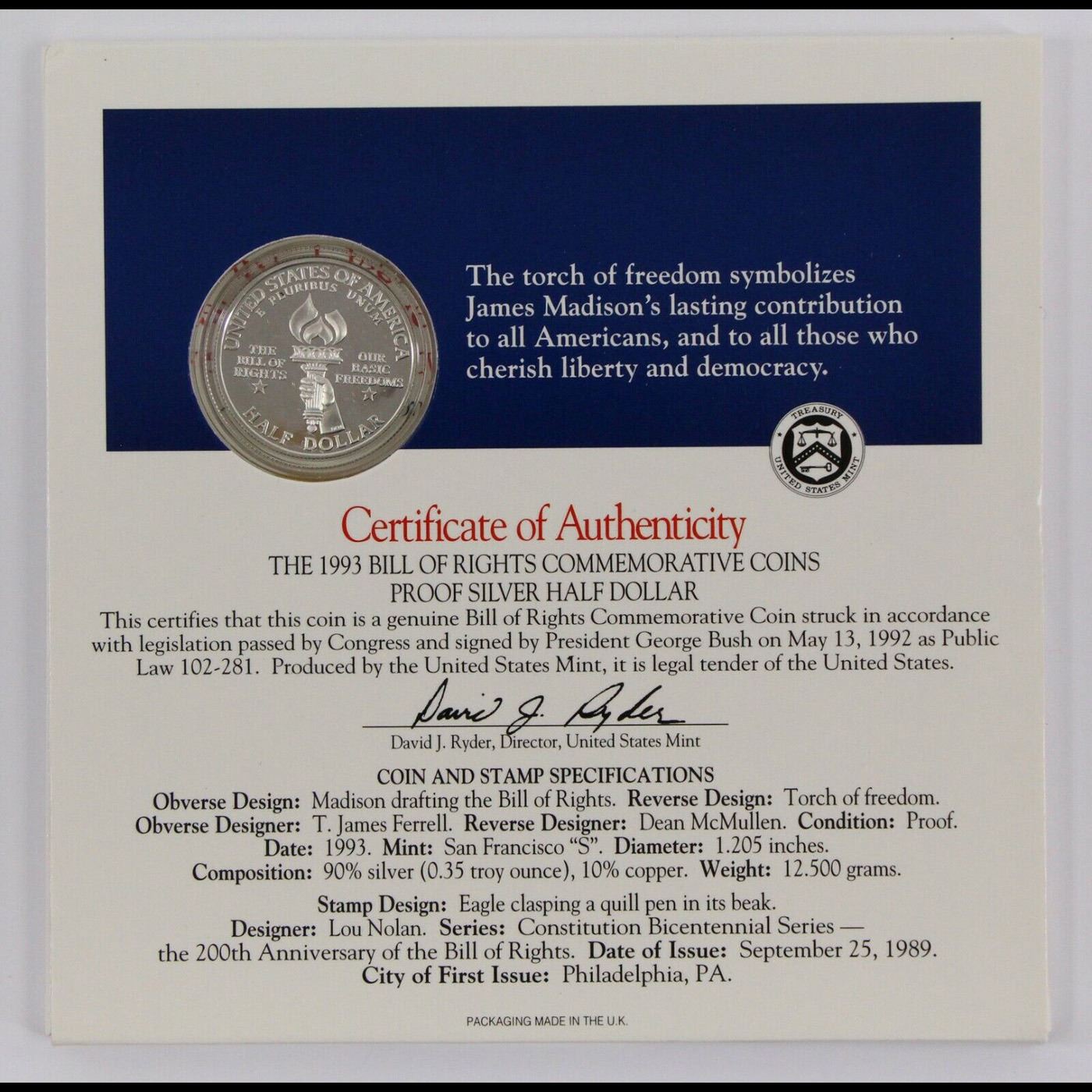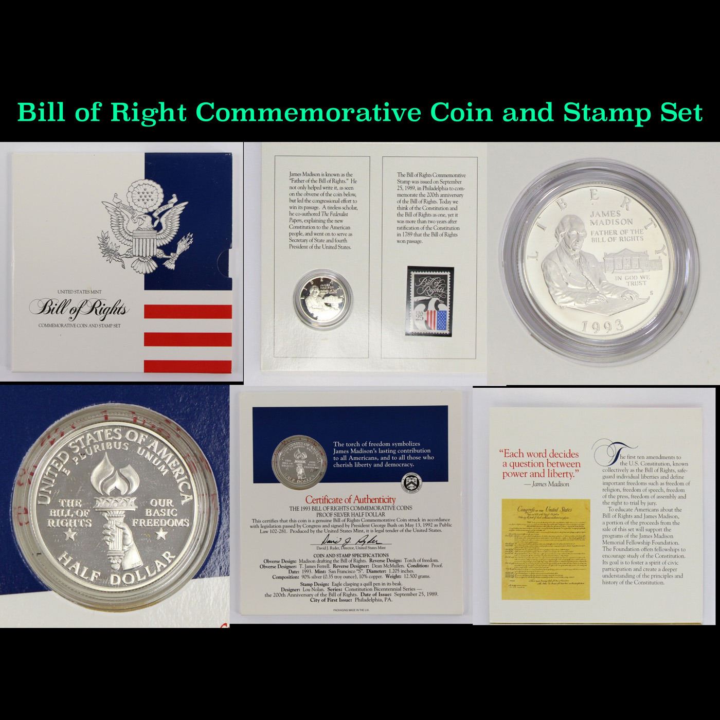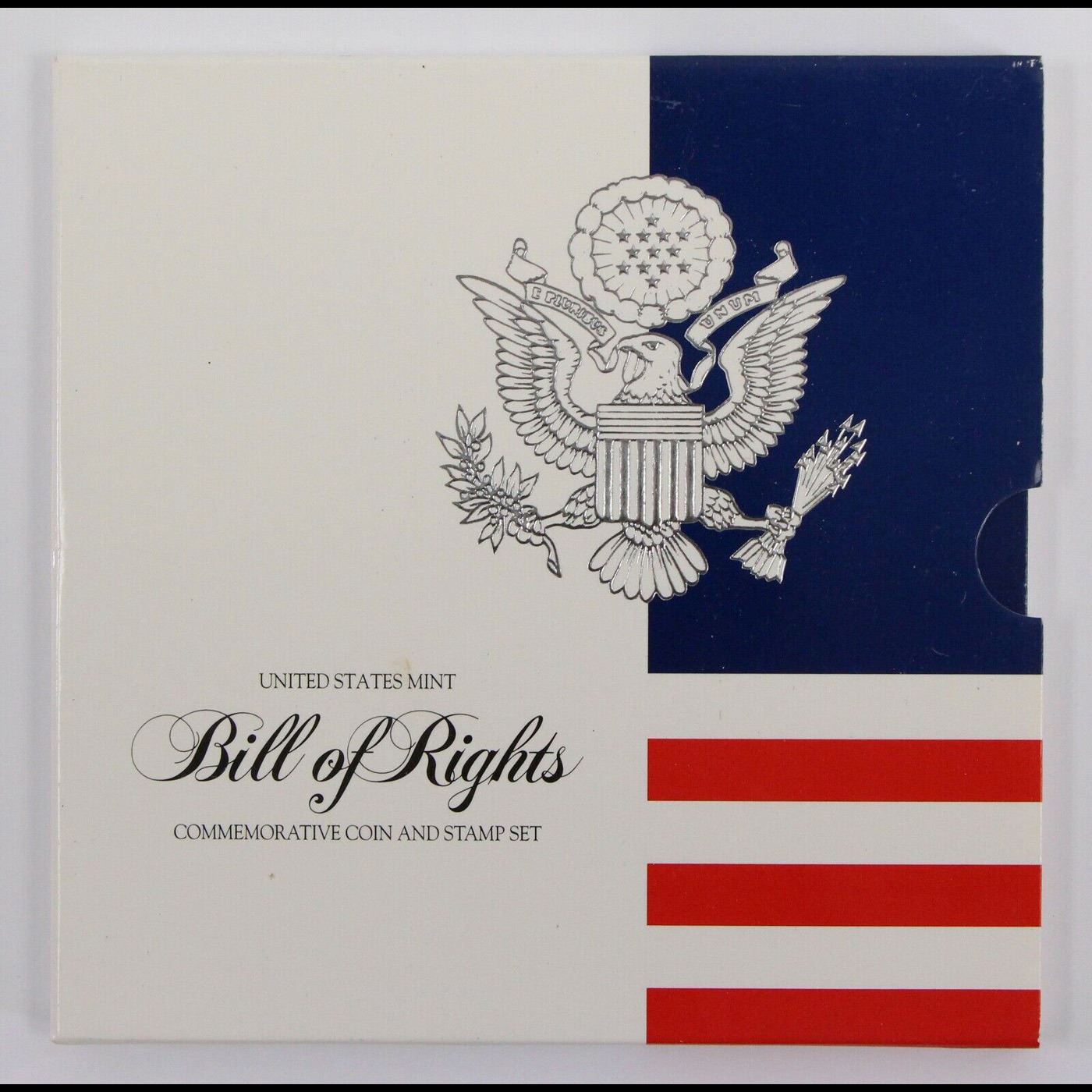 Bill of Right Commemorative Coin and Stamp Set. The Bill of Rights Coemmorative stamp was issued on September 25, 1989, in Philadelphia to commemorate the 200th anniversary of the Bill of Rights. Today we think of the Constitution and the Bill of Rights as one, yet it was more than 2 years after ratification of the Constitution in 1789 that the Bill of Rights won passage.