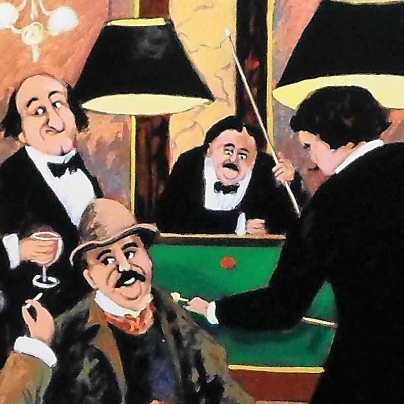 "Billiards" is a limited edition serigraph on paper by Guy Buffet. It is numbered, hand-signed by the artist, and comes with a Certificate of Authenticity. Measures approx. 39" x 30" (image).