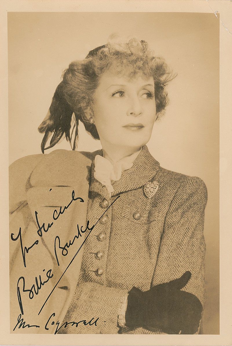Vintage sepia matte-finish 5 x 7 photo, signed and inscribed in fountain pen “Yrs Sincerely, Billie Burke, Mrs. Cogswell.” In fine condition, with a couple of creases to top right corner.