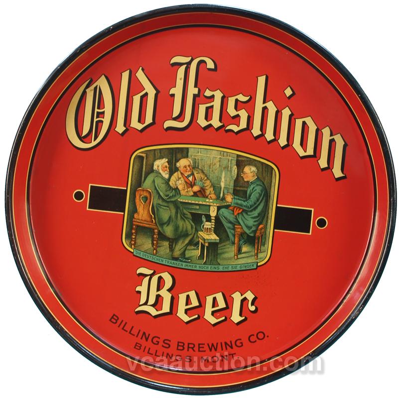Billings Brewing Co. Billings, Mont. Round Tin Serving Tray, "Old Fashion Beer" - 12" diam