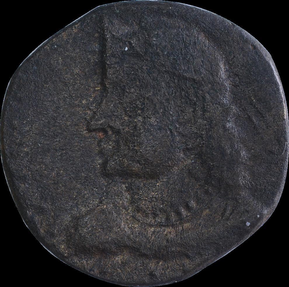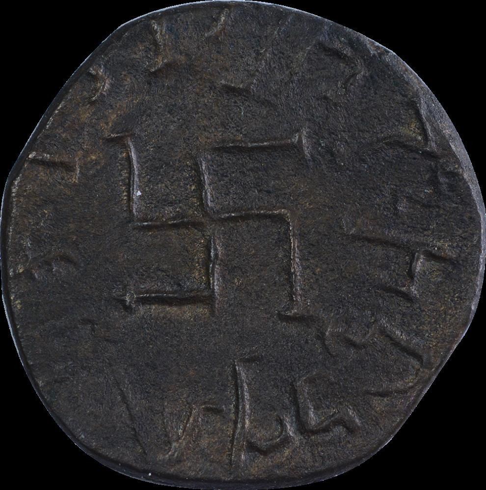 Indo Scythians, Bhimarjuna, Billon Drachma, Obv: diademed, crowned burst left, dotted border / swastika right, kharoshti legend around, Rev: Bhimarjunasa yolatakhmaputrasa parataraja (no sa) (of bimarjuna son of yolatakhma, parata king, 1.93g,14.91mm, about very fine.