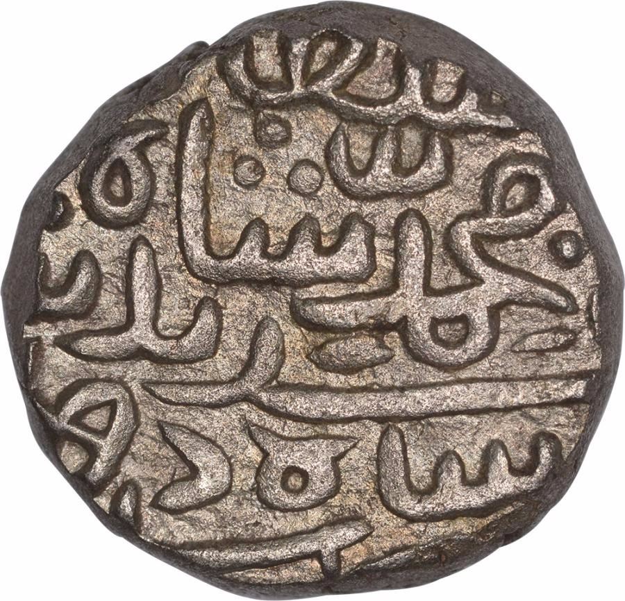 Delhi Sultanate, Muhammad Bin Farid,Hadrat Delhi,Billon Tanka,AH 845, Obv:muhammad shah sultan farid shah hadrat shah bi-hadrat dehli,Rev:al-khalifa amir al-mu'minin khulidat khilafatuhu,9.39g, 18.12 mm, (GG # D672), aboutextremely fine, Scarce.