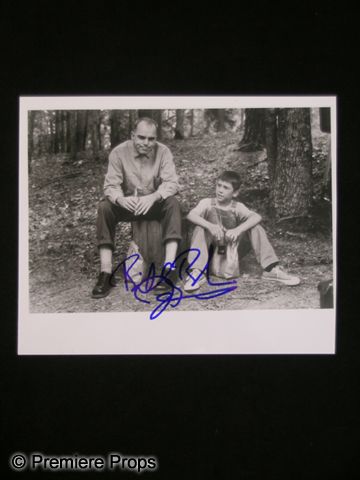 This is a glossy, b&w autographed photo of actor Billy Bob Thornton from his 1996 film 'Slingblade.' The photo features Billy Bob and Lucas Black in a scene from the film, and is signed in blue felt ink. The autograph was obtained by a gentleman who has been collecting autographs for over 20 years. (measures approx. 8" x 10")