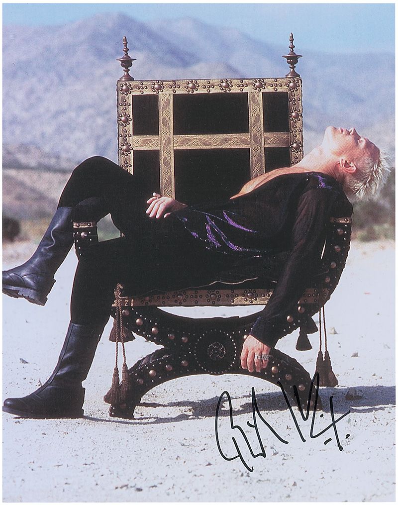 Color glossy 11 x 14 photo of Idol lounging on a throne in the desert, signed in black felt tip. In very fine condition.