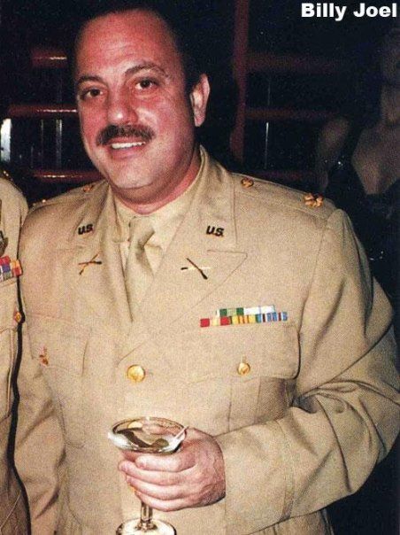 This is a complete military costume worn by acclaimed songwriter and performer Billy Joel from the collection of Costume Designer Frankie Stein. Ms. Stein's work has been featured on stage, television, film & print, and she successfully owned and operated "Frankie Steinz" costume shop in New York. As a freelance costume designer, she later moved her business to New York City where her many clients include ABC, Sony, Disney and HBO, and celebrities Robert De Niro, Billy Joel and Dolly Parton, to name a few. Her work has been featured in The New York Times, Time Out magazine and People Online, and has been seen on The David Letterman Show, The View, Saturday Night Live, The Rosie O'Donnell Show, and Everybody Loves Raymond, and she is credited on the major Academy Award winning film 'Eternal Sunshine of the Spotless Mind.' This wardrobe consists of a heavy canvas material, tan blazer with shoulder pins, gold U.S. and crossed rifle lapel pins, and military rank pins over the left pocket; a long sleeve, tan cotton shirt with 'The Conquerer Tropical' label; a pair of tan slacks with cloth belt and brass buckle; a tan tie and a pair of tan socks.
