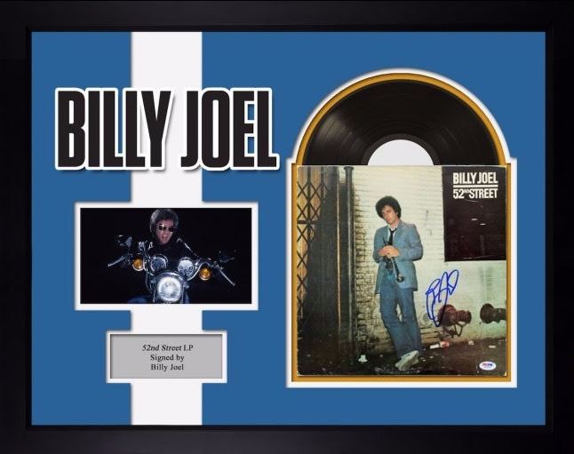 Billy Joel signed 52nd Street album. This item is custom framed and roughly 24 by 26\". It is PSA authenticated. This item comes with a Certificate of Authenticity from a third party authenticator. This Certification of Authenticity does not imply that the item will be certified by any other rival authentication companies. The accompanied certification is the only certification the auction company can confirm. These items are being sold as collectable pieces and there is no guarantee that this item can be resold on any online marketplace. Each of these companies has their own policies and politics.