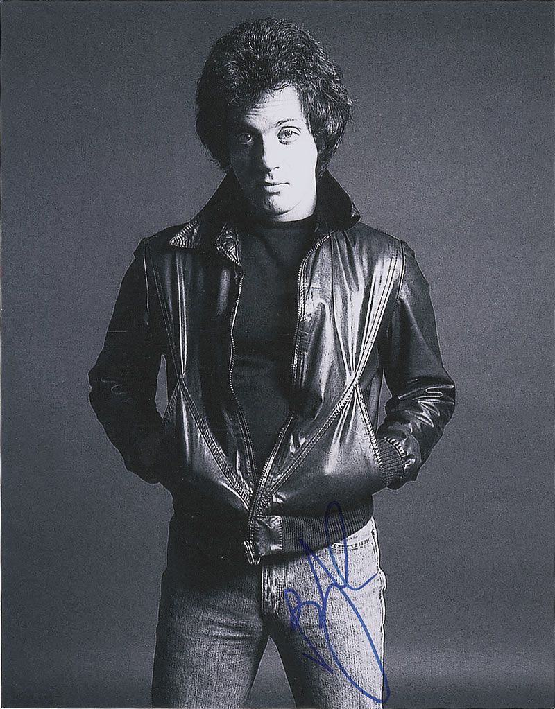 Satin-finish 11 x 14 photo of Joel from early in his career, signed in blue felt tip. Scattered bends and creases, otherwise fine condition.