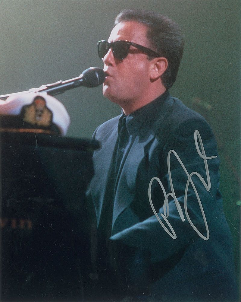 Color glossy 8 x 10 photo of Joel on stage at his piano, signed in silver ink. In very fine condition.