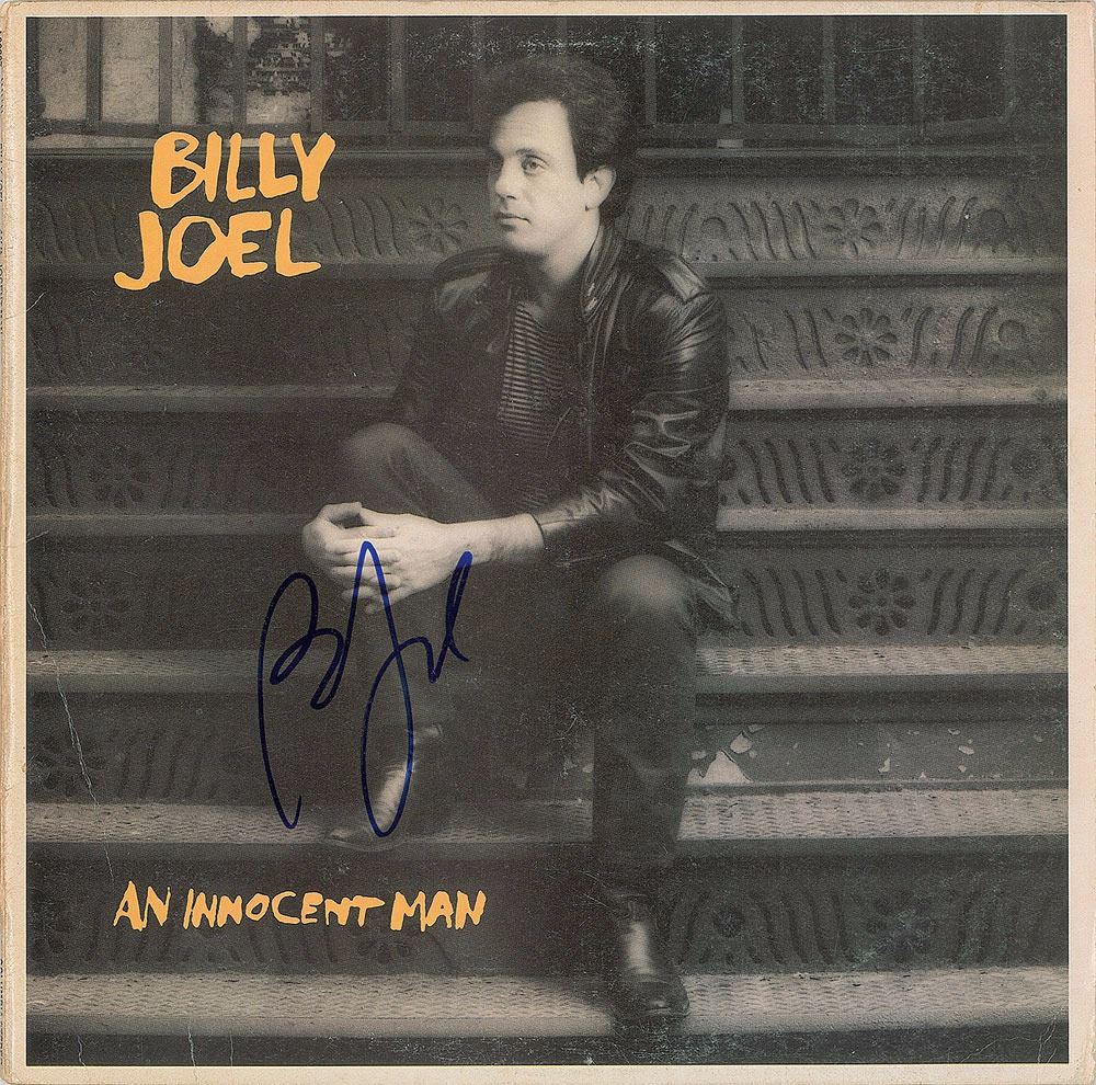 An Innocent Man album signed on the front cover in blue felt tip by Billy Joel. In fine condition, with creasing to the lower left. The record is not included. Originally obtained by in-person specialist Mike Wehrmann.
