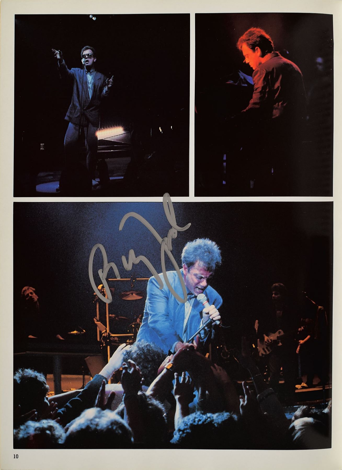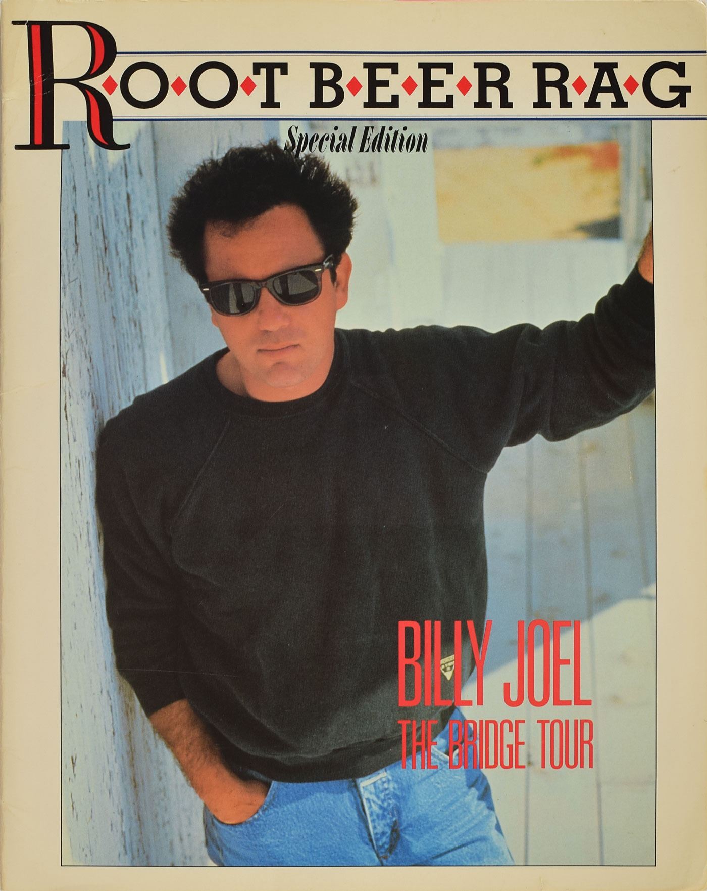 Official program for Billy Joel's 1986 Bridge Tour, twenty-two pages, 11 x 14, signed on his image on page 10 in silver ink by Joel. The program is also signed next to their respective images by Peter Hewlett, Liberty DeVitto, David Brown, Russell Javors, and Mark Rivera. In fine condition, with light corner creasing. Consignor notes that the signatures were obtained at the Beachwood Marriott Hotel before their show at the Richfield Coliseum.