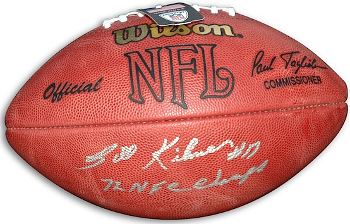 Billy Kilmer finished his 16-year NFL career with 1,585 of 2,984 completions for 20,495 yards and 154 touchdowns, with 146 interceptions. He also rushed for 1,509 yards and 21 touchdowns, caught 27 passes for 288 yards and one touchdown, and punted the ball 16 times for 598 yards. Billy Kilmer has hand autographed this Official NFL Tagliabue Football with 72 NFC Champs inscription. Certificate of Authenticity from Athlon Sports Collectibles.