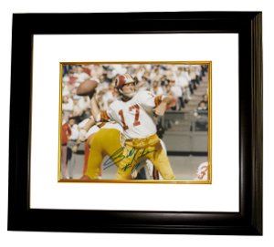 Billy Kilmer finished his 16-year NFL career with 1,585 of 2,984 completions for 20,495 yards and 154 touchdowns, with 146 interceptions. He also rushed for 1,509 yards and 21 touchdowns, caught 27 passes for 288 yards and one touchdown, and punted the ball 16 times for 598 yards. Billy Kilmer has hand autographed this Washington Redskins 8x10 Color Photo. Custom White Mat and Black Color Framed as shown Certificate of Authenticity from Athlon Sports.