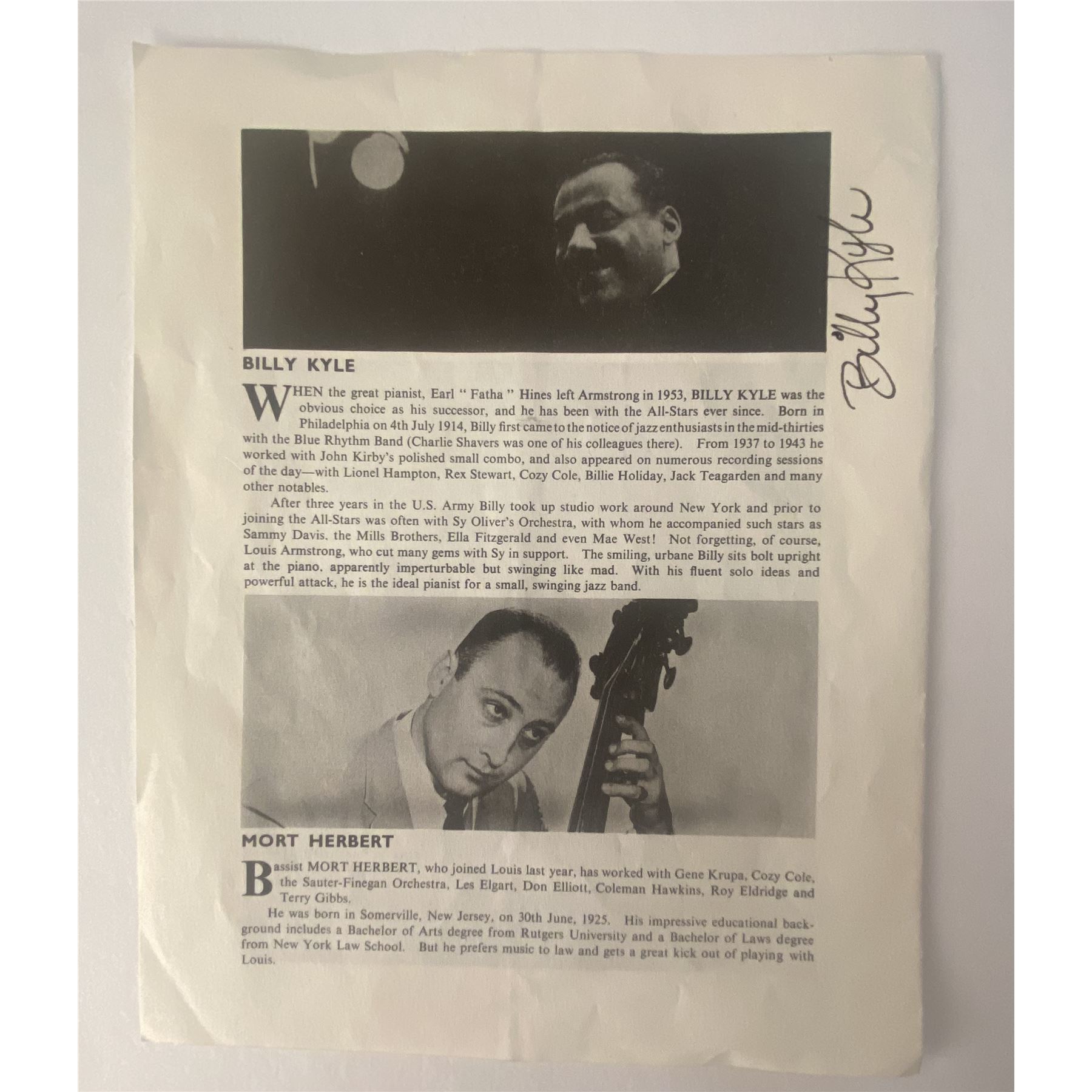 Autographs: Billy Kyle