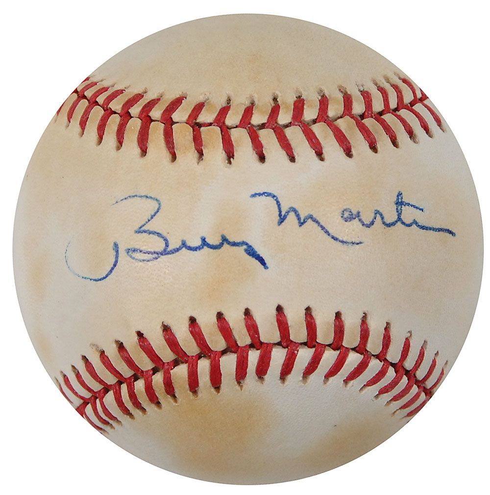Official Rawlings American League baseball signed in blue ballpoint on the sweet spot. In very good condition, with scattered toning to ball, including some over signature.