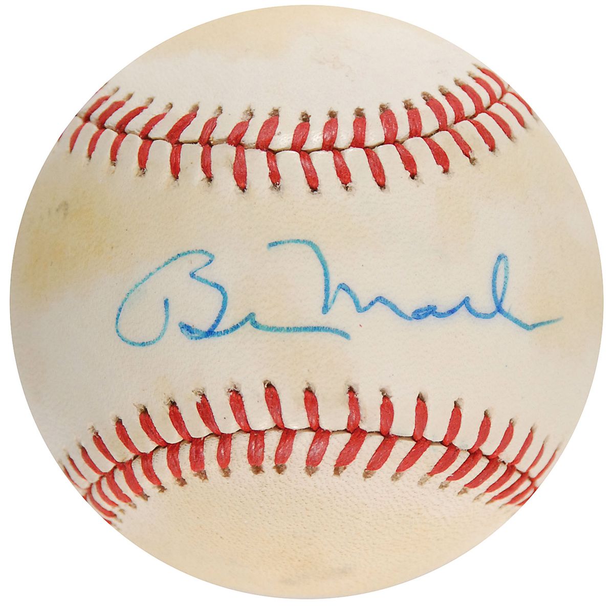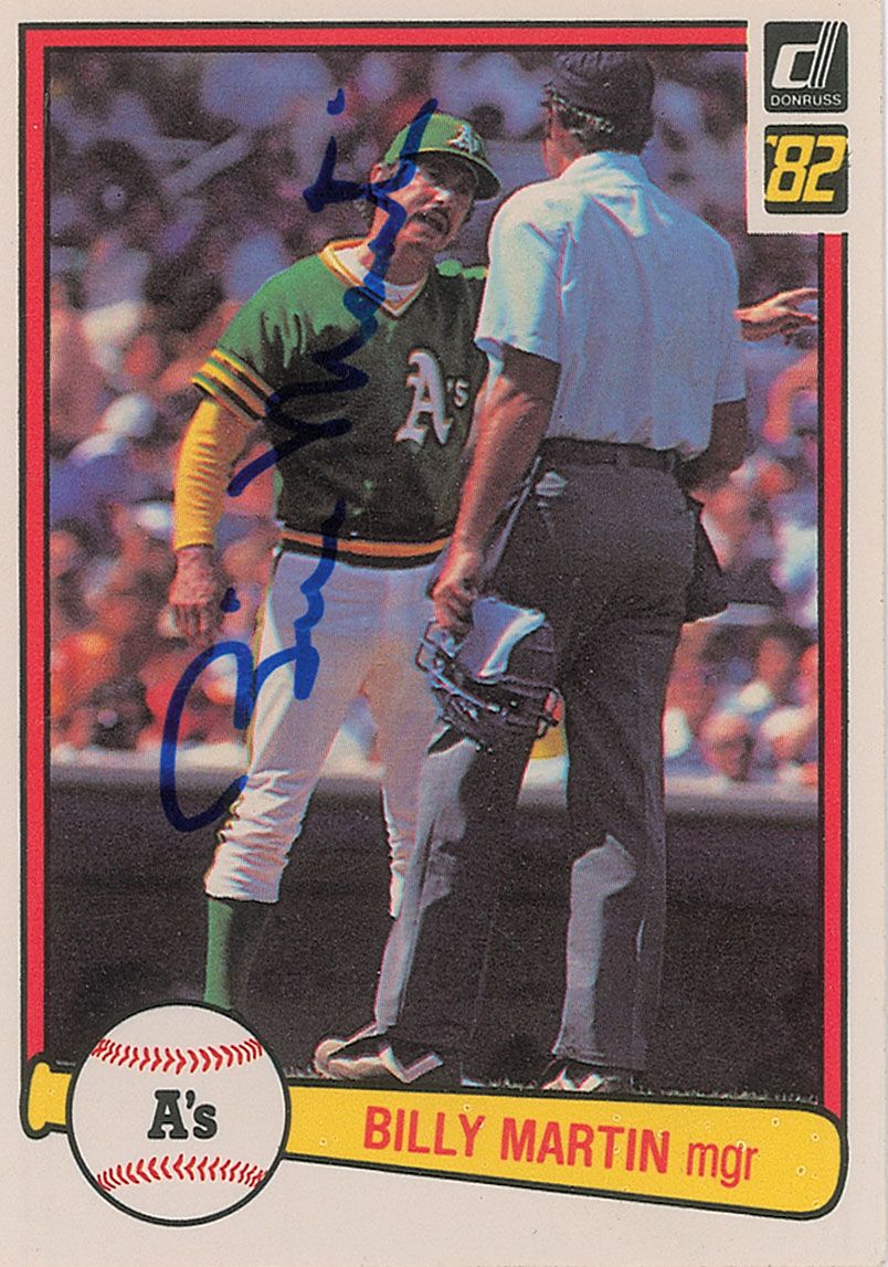 Two items: an official Rawlings American League baseball signed in blue ballpoint on the sweet spot; and a 1982 Donruss baseball card, signed in blue felt tip. In overall very good condition, with moderate overall irregular toning to the baseball and mild haloing to the signature.