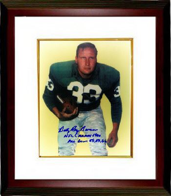 Billy Ray Barnes was drafted in the second round of the 1957 NFL Draft by the Philadelphia Eagles. He made the Pro Bowl his first three years in the league (1957–1959) and was a key member of the backfield during the Eagles' 1960 NFL Championship team. During the title game against the Green Bay Packers, Barnes ran the ball 13 times for 42 yards. He had a nine-yard run and key 13-yard pass reception on the game-winning drive, and blocked Packer defensive end Bill Quinlan that helped Ted Dean to score the winning touchdown. Billy Ray Barnes has hand signed this Philadelphia Phillies 8x10 Photo with NFL Champs 1960 and Pro Bowl 58, 59, 60 inscriptions. Certificate of Authenticity from Athlon Sports. Custom White Mat and Premium Mahogany Frame as shown.