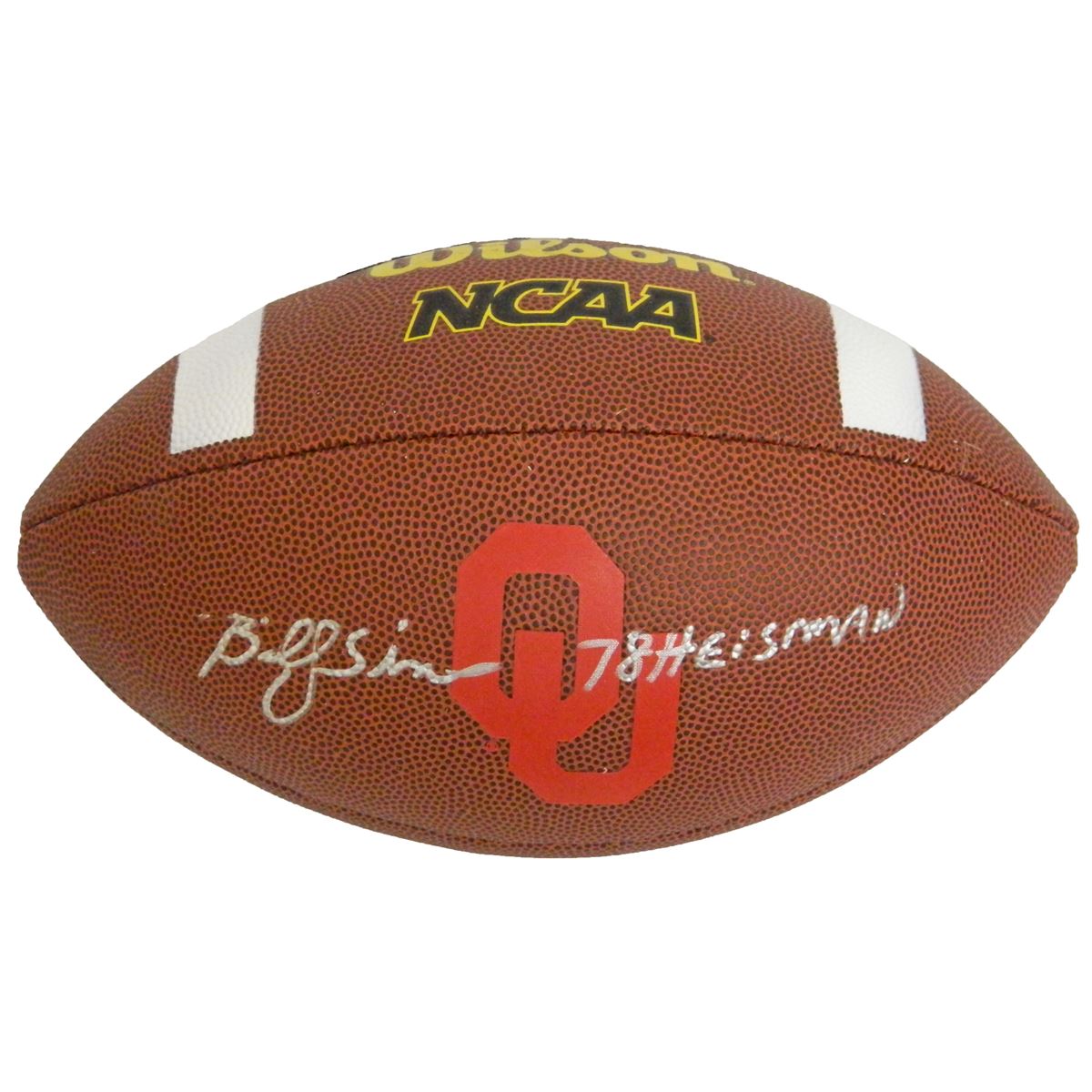 Billy Sims signed Oklahoma Sooners Wilson NCAA logo football with '78 Heisman' inscription. Item comes with a Schwartz Sports Memorabilia tamper-proof numbered hologram and Certificate of Authenticity which can be verified online.