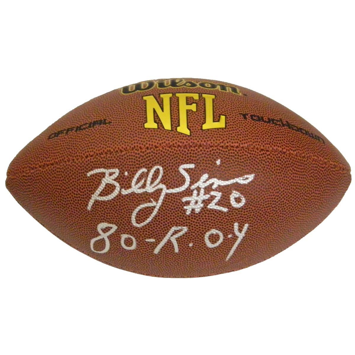 Billy Sims signed Wilson Touchdown full size NFL football with '80 ROY' inscription. Item comes with a Schwartz Sports Memorabilia tamper-proof numbered hologram and Certificate of Authenticity which can be verified online.