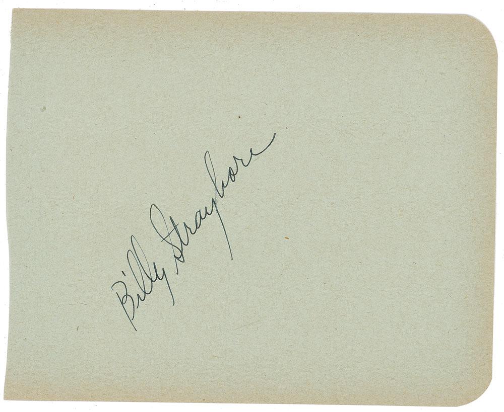 Immensely gifted composer, pianist and arranger, Strayhorn (1915–1967) is best remembered as the composer of ‘Take the A Train’ and for his longtime association with Duke Ellington. Vintage ink signature, “Billy Strayhorn,” on a light green 5.5 x 4.25 album page. In fine condition, with some mild edge toning and a lightly trimmed left edge.