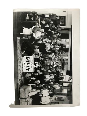 This 8x10" black and white photograph captures the cast and crew of the short-lived 1991 sitcom, Billy, frozen in time. The image, taken on set to wrap the first season, offers a glimpse behind the scenes of the show. The black and white format lends a timeless quality to the photo, emphasizing the faces and expressions of those present. A candid shot, a moment captured between takes, offering a more intimate view of the Billy family, both in front of and behind the camera. This photograph serves as a poignant reminder of a show that, while brief, undoubtedly holds a special place in the memories of those who worked on it and those who enjoyed watching it. From the collection of one of the actors on the show who was not in attendence the day this photo was taken. Ah, you're likely thinking of the 1992 sitcom Billy starring Billy Connolly!