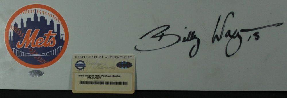 Pitching Rubber is approximately 24x6" in size and has been hand-signed in black felt-tip pen by Billy Wagner. The autograph includes a MLB hologram as well as a Steiner hologram and matching COA for authenticity purposes.