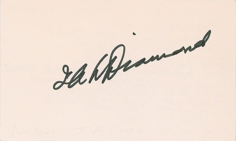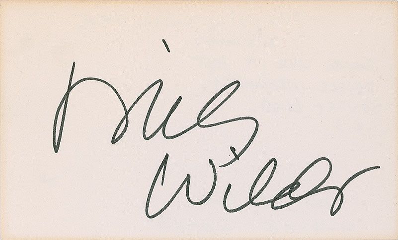 Felt tip signatures, “Billy Wilder,” and “A. L. Diamond” on individual off-white 5 x 3 cards. In fine condition, with some slight edge toning. Signatures originate from the in-person Hollywood collection of Eddie Colbert.
