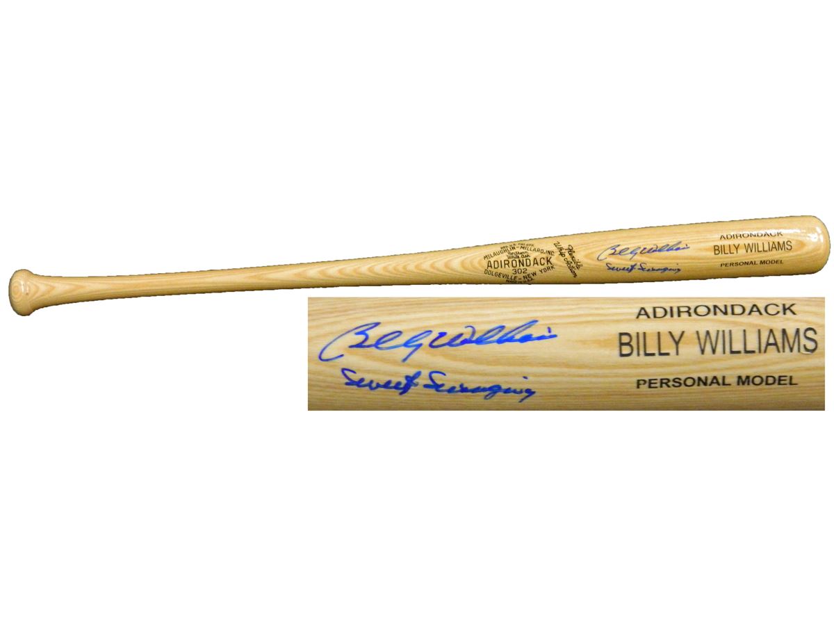 Billy Williams signed Rawlings 60's style Adirondack blonde name engraved bat with 'Sweet Swinging' inscription. Item comes with a Schwartz Sports Memorabilia tamper-proof numbered hologram and Certificate of Authenticity which can be verified online.