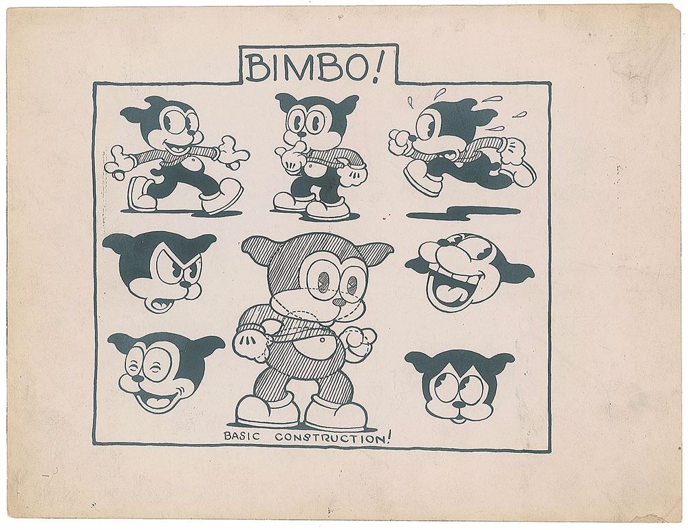 Original circa early 1930s printed Fleischer Studios character sheet, one page, 11 x 8.5, depicting the "basic construction" of Bimbo, the tubby cartoon dog often featured as Betty Boop's main love interest. In fine condition.