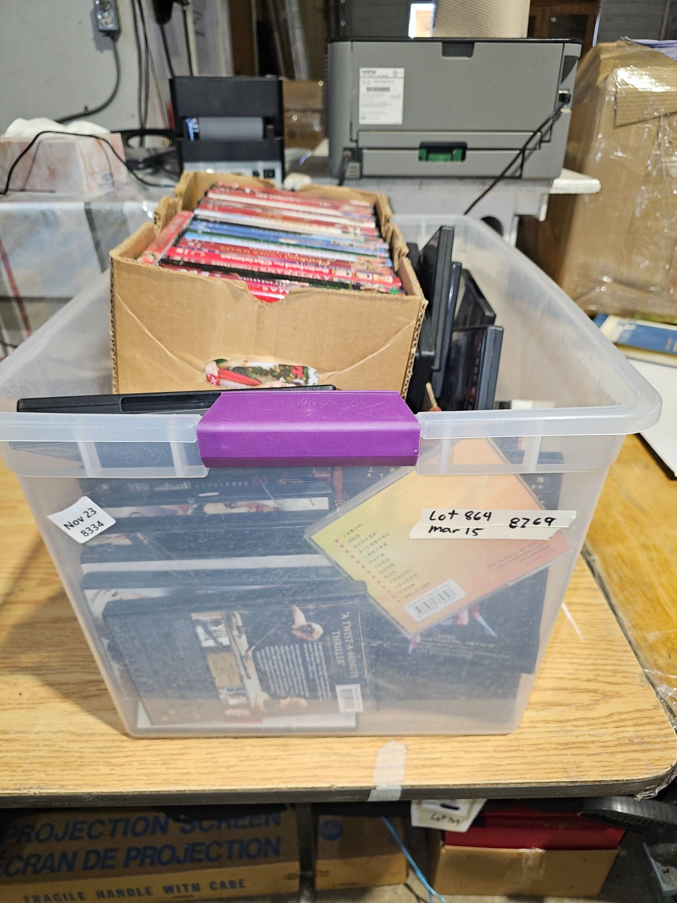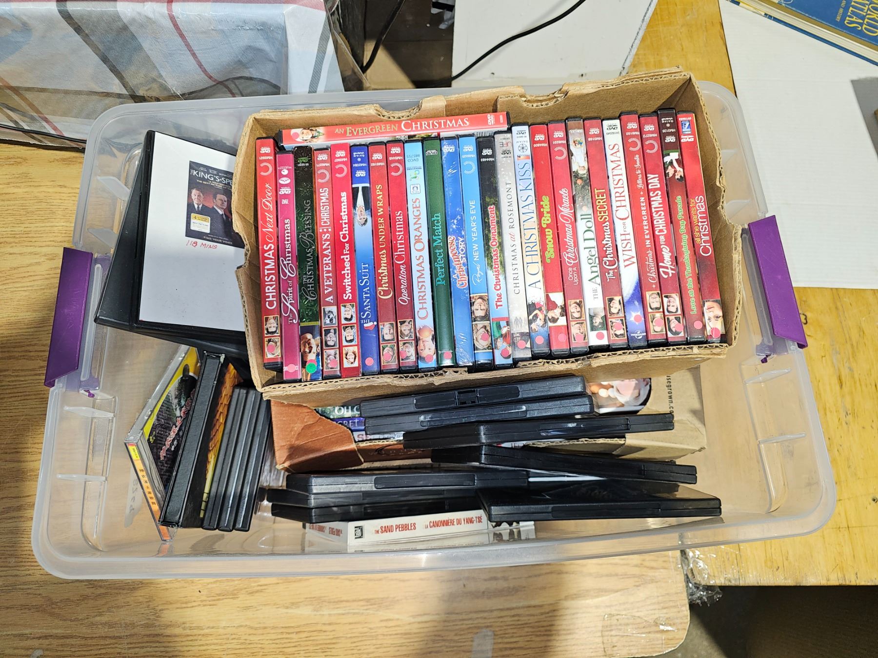 Bin of DVDs