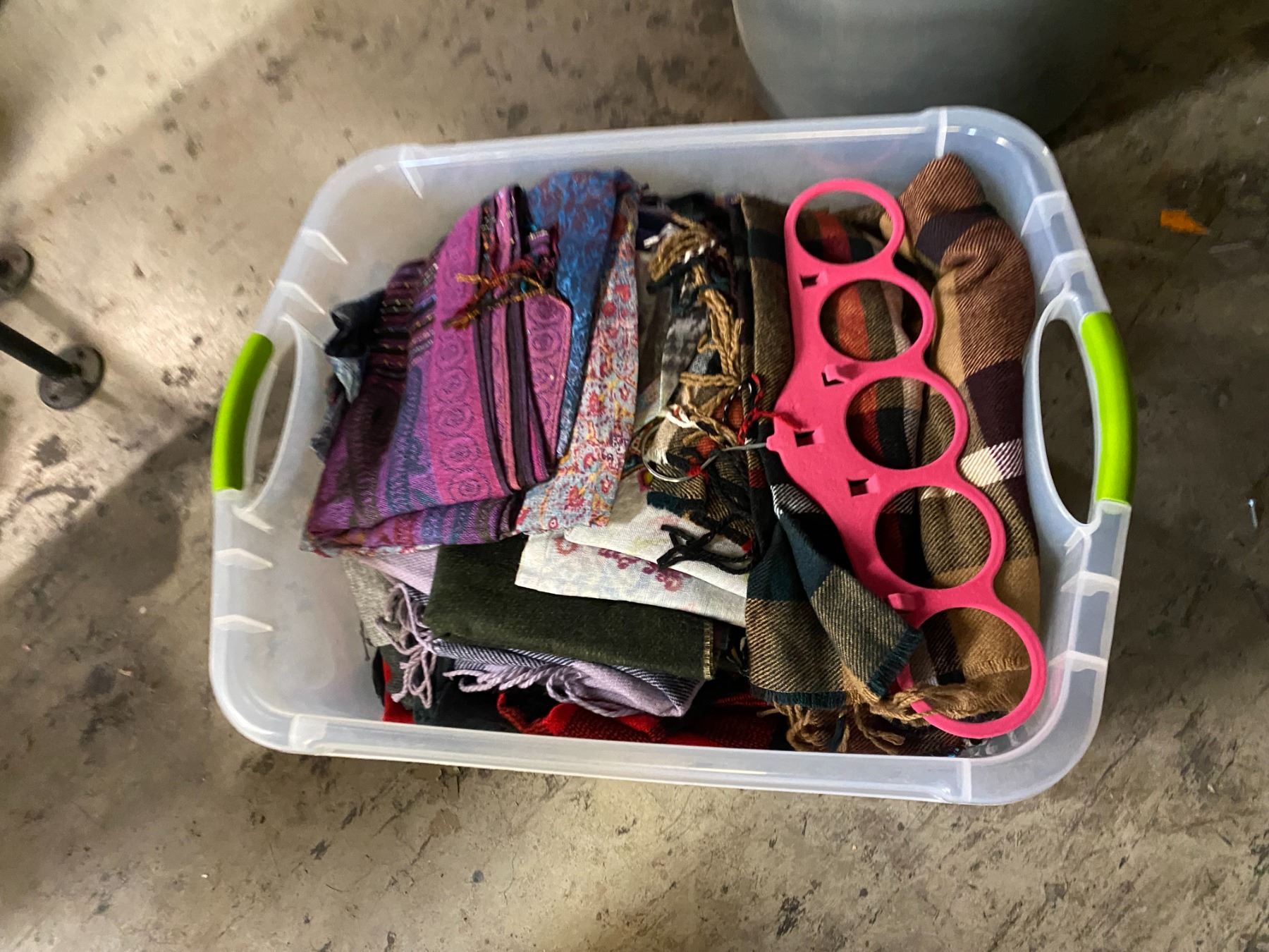Bin of scarves