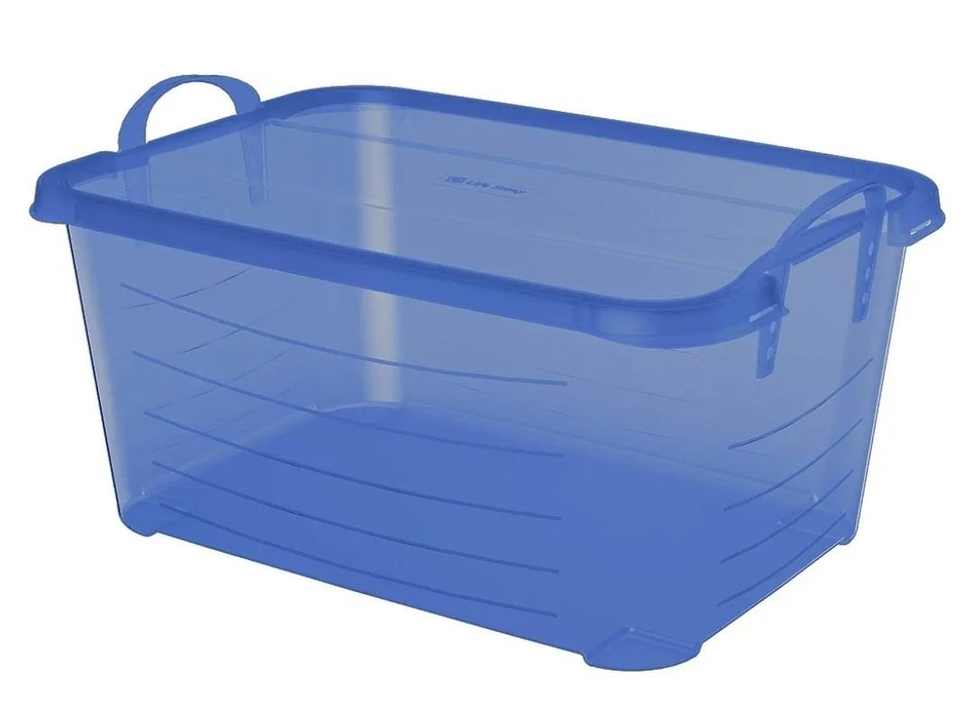 55 Quart Life Story Blue Storage Bin, With Lid, Brand New