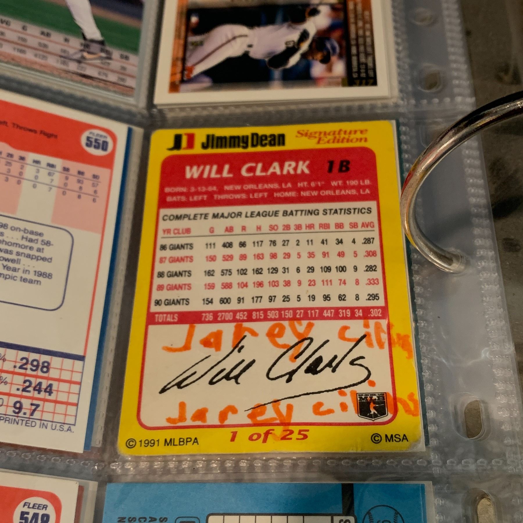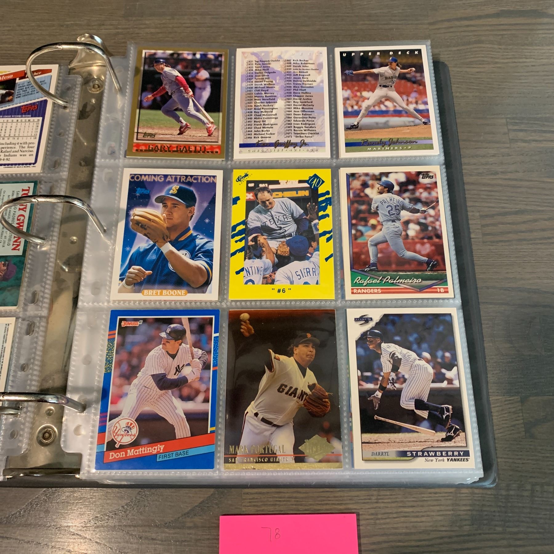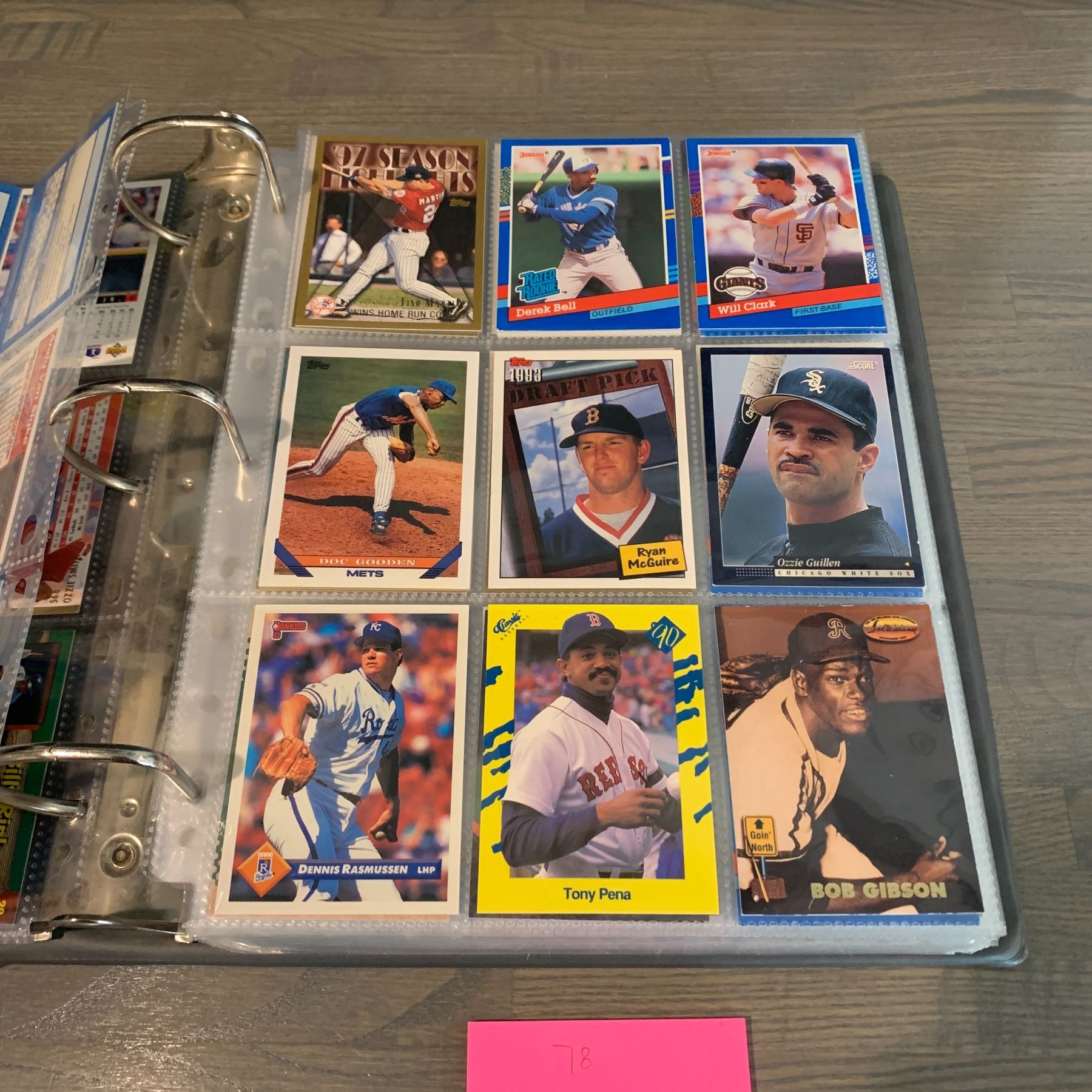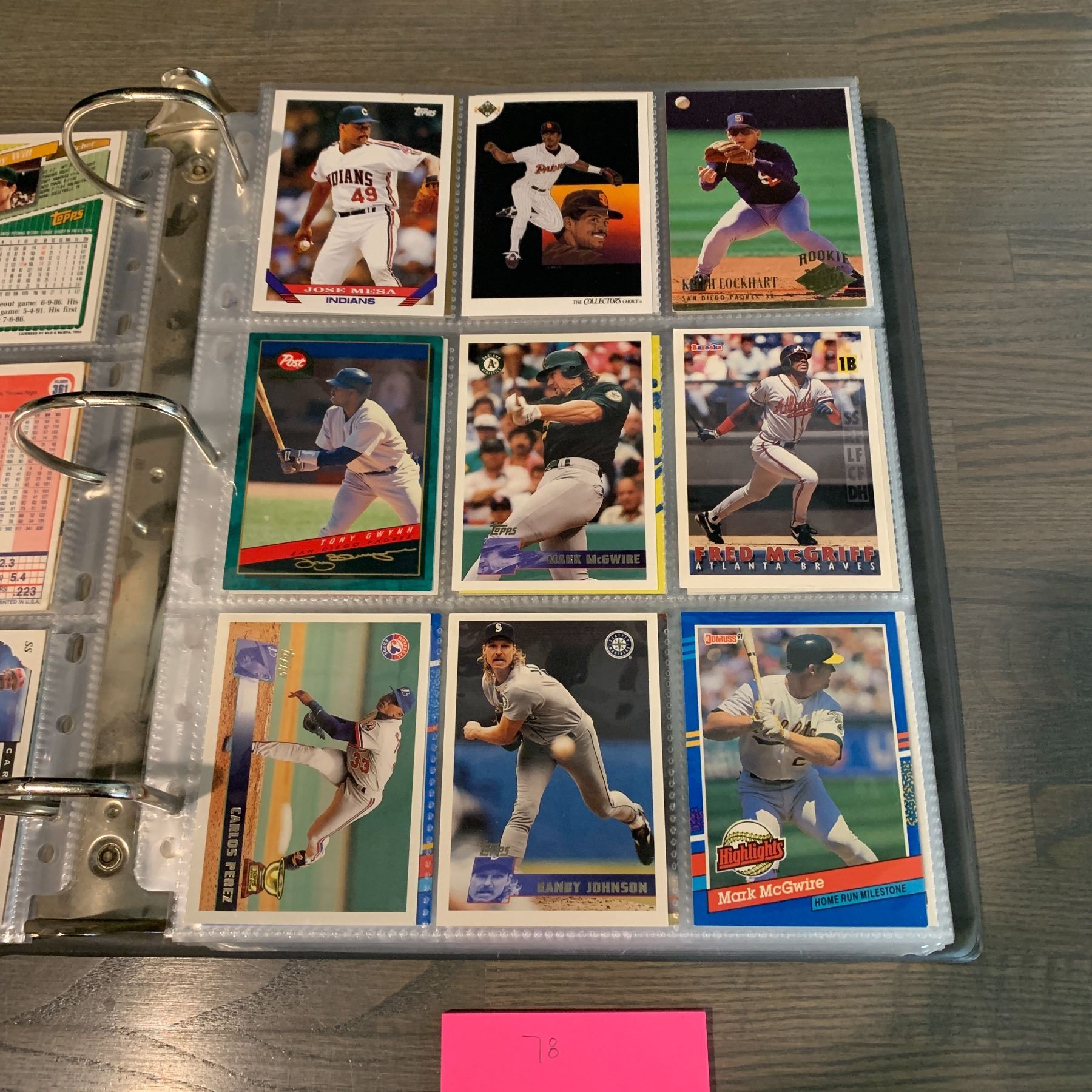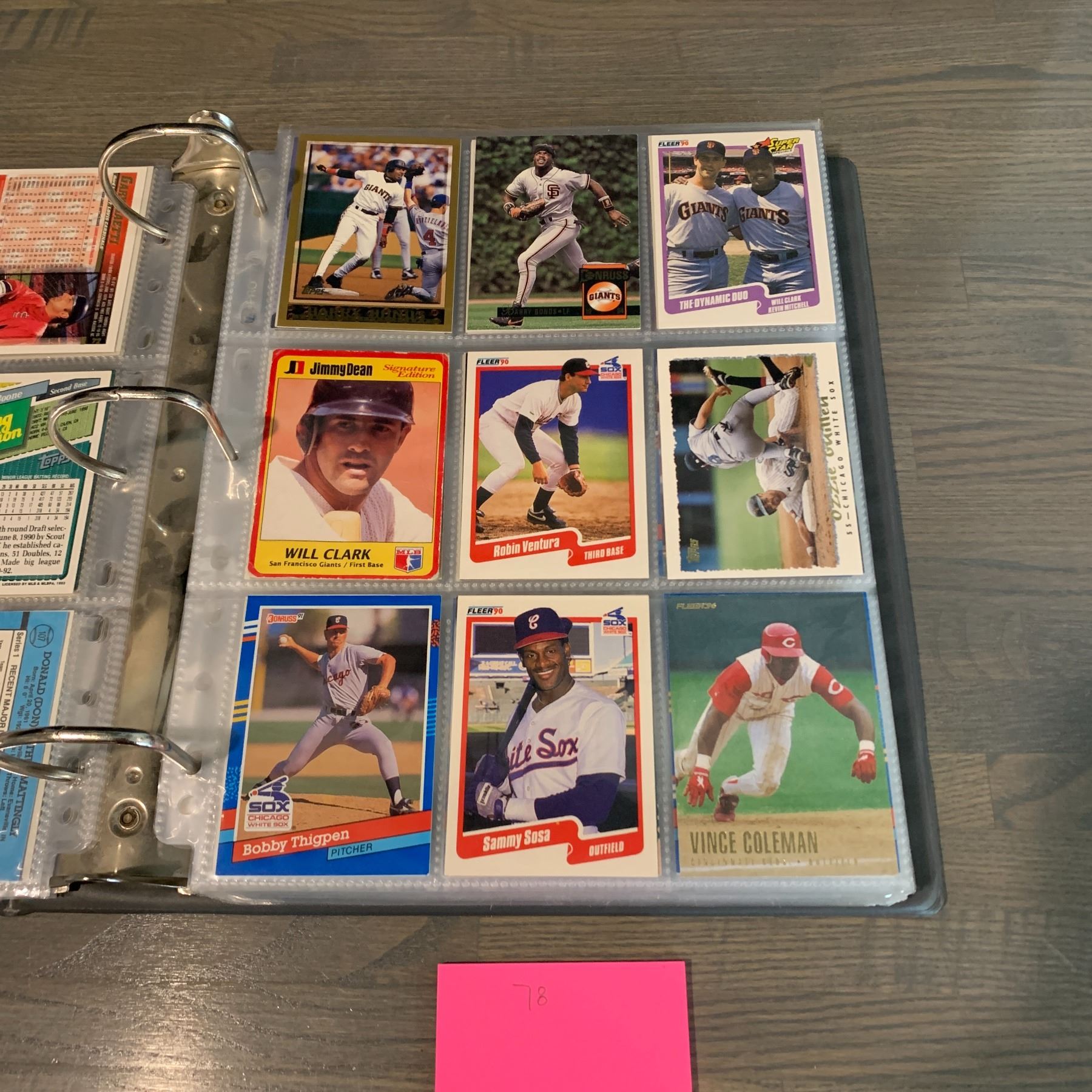 Binder Filled with 100s of 90s Baseball cards. Will Clark Autograph. See photos for condition. If you are interested in consigning with us, email aeronhouse1994@gmail.com or fill out the consignment form on ahauctionhouse.com
