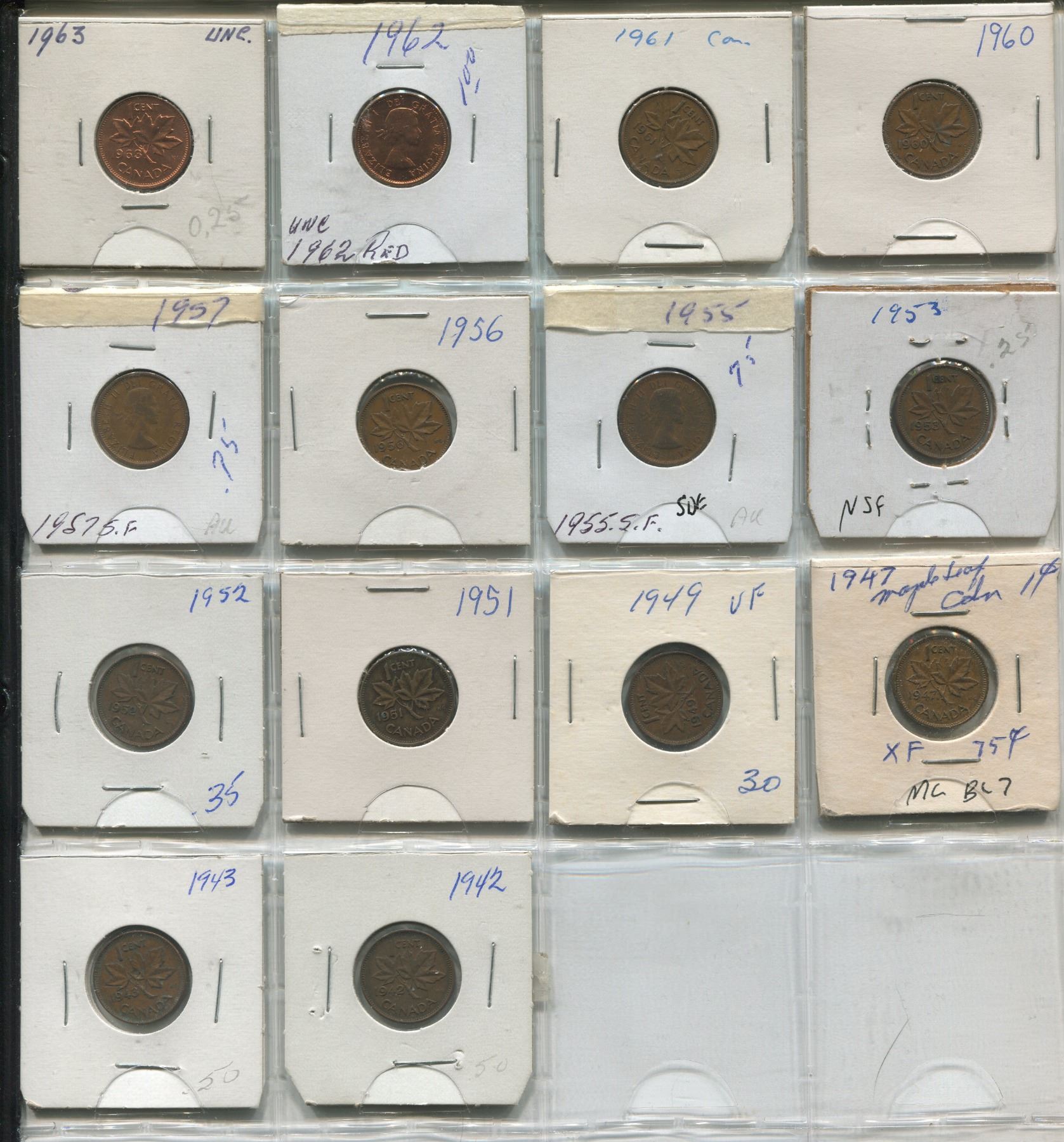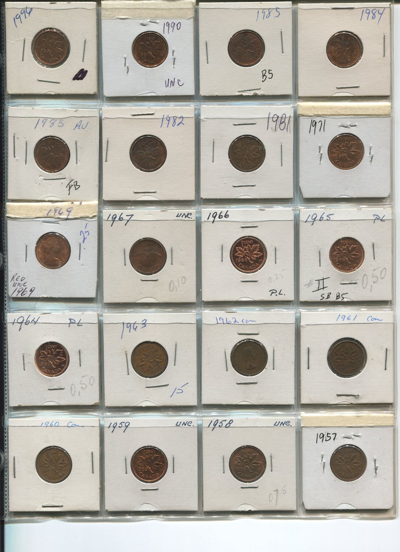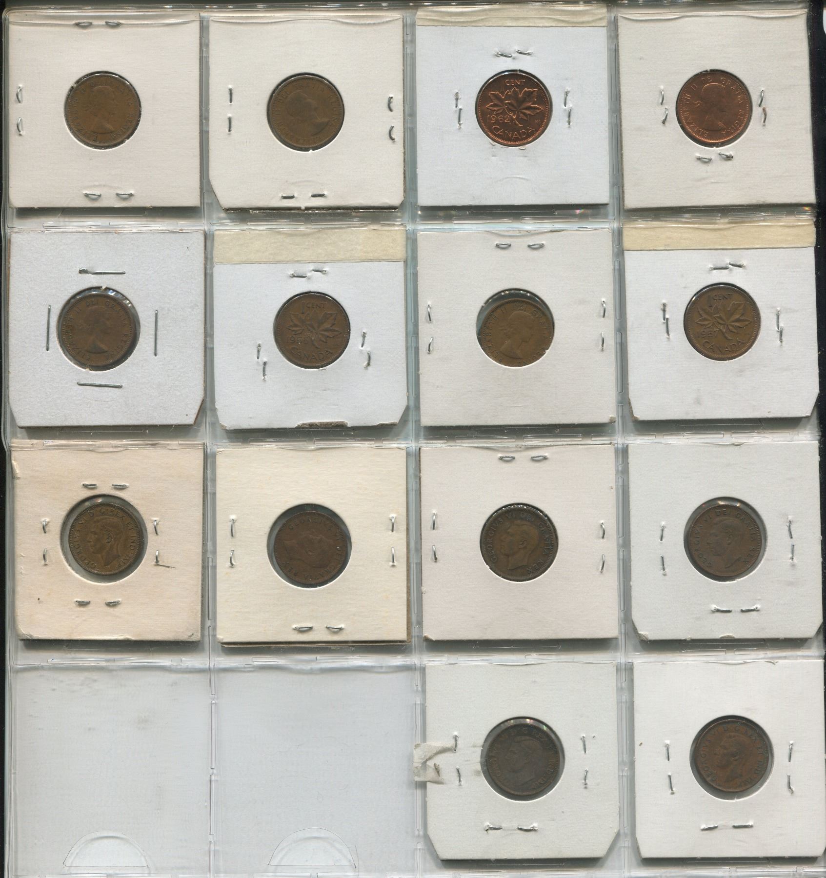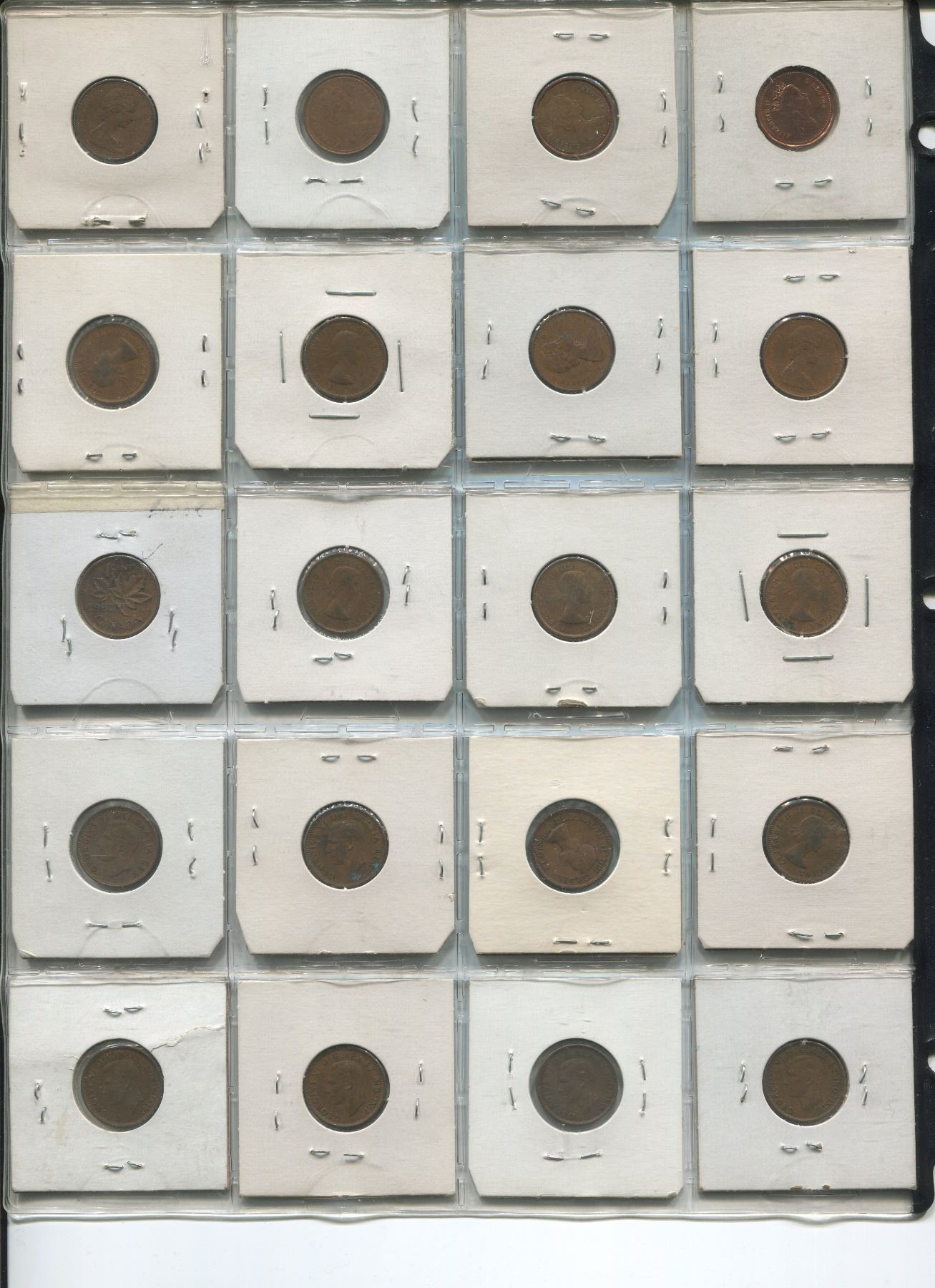 Binder of 1937 to 1990 various years (lots of PL and UNC coins),81-Small Canadian penny,King George VI and Queen Elizabeth II