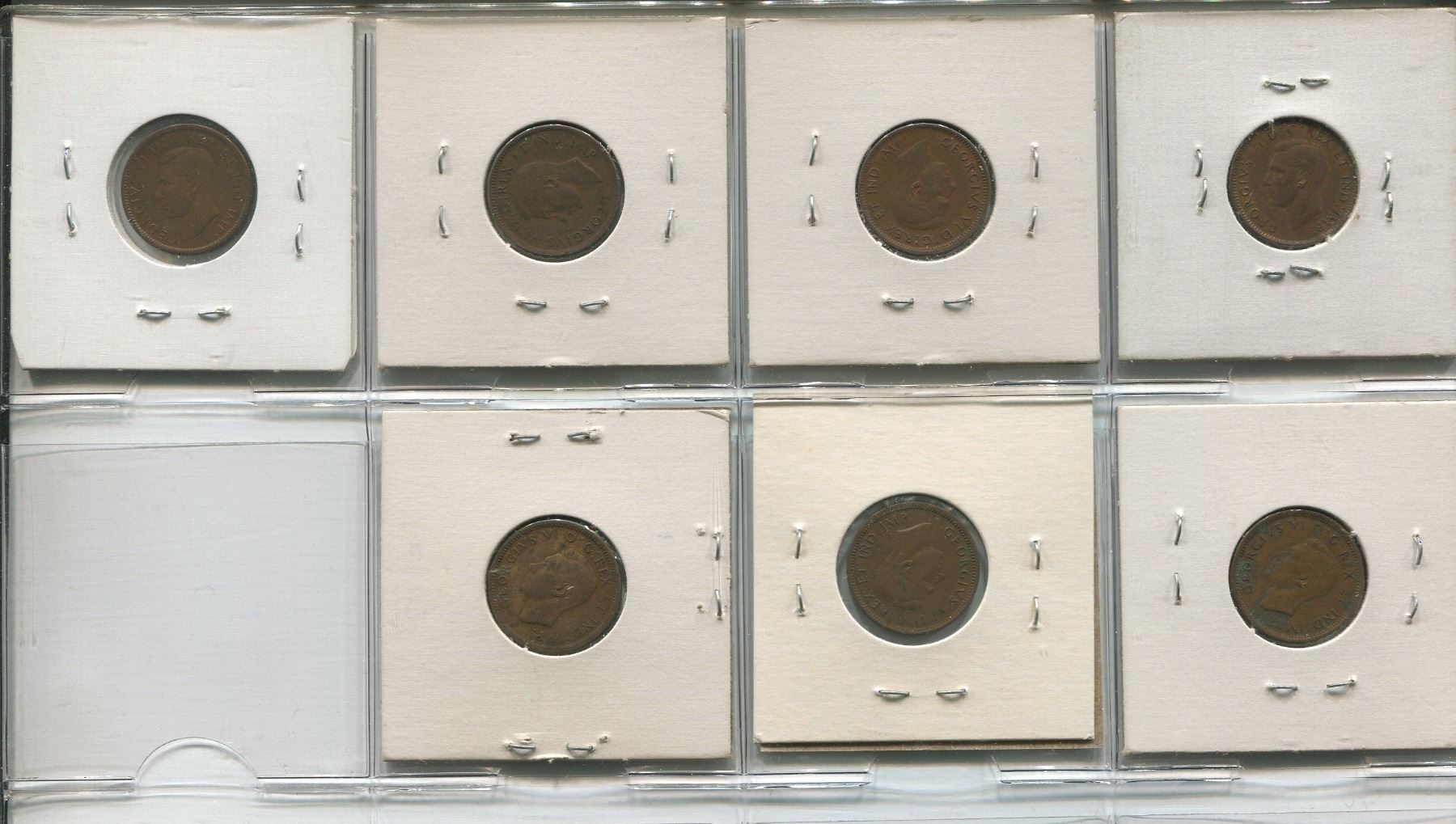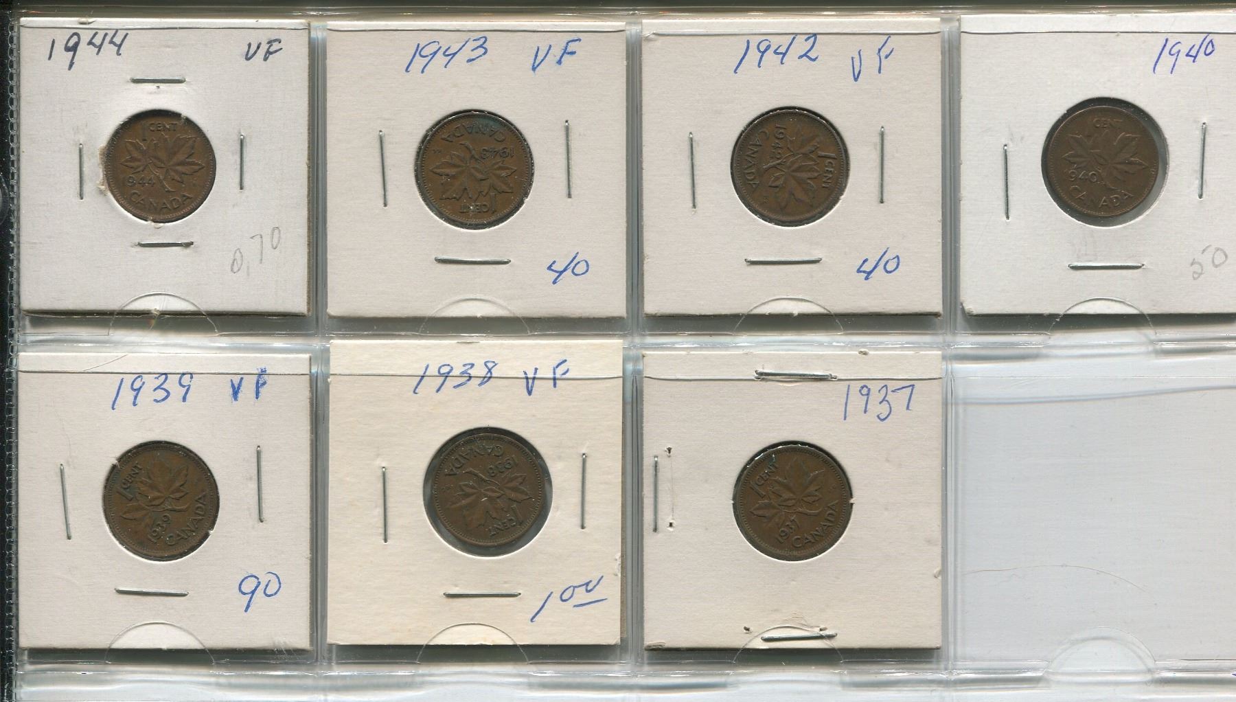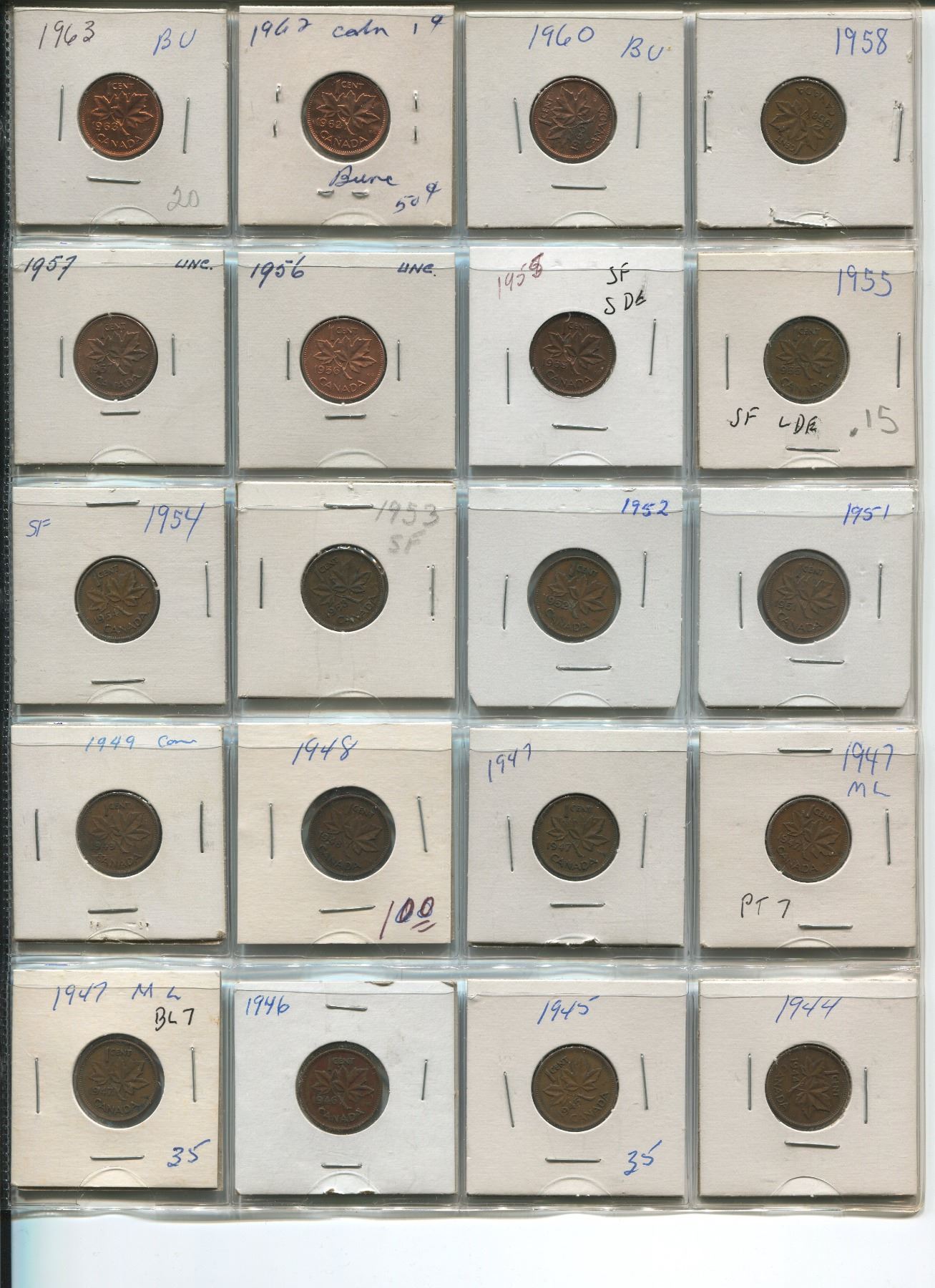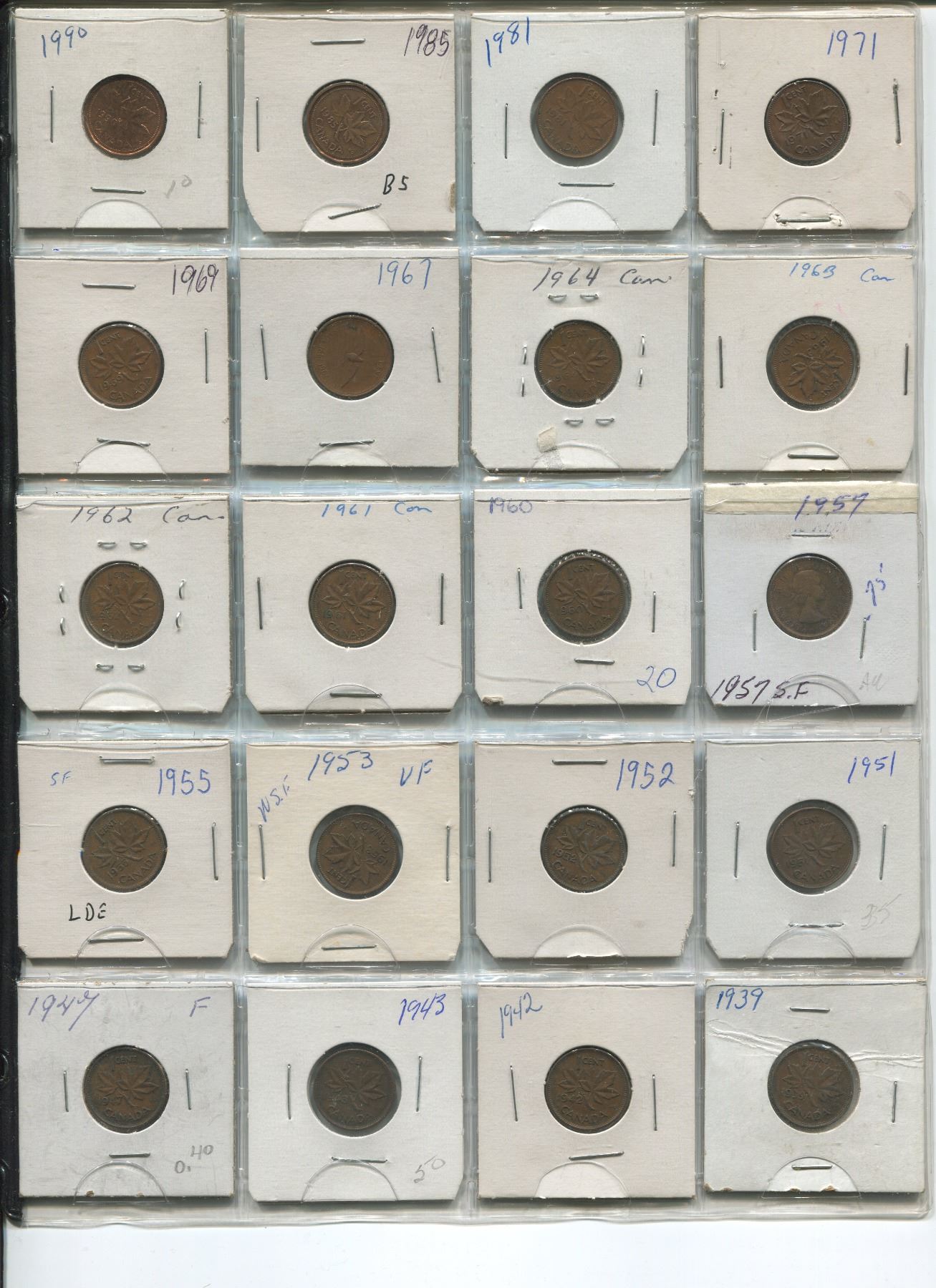 Binder of 1937 to 1990 various years (lots of PL and UNC coins),81-Small Canadian penny,King George VI and Queen Elizabeth II