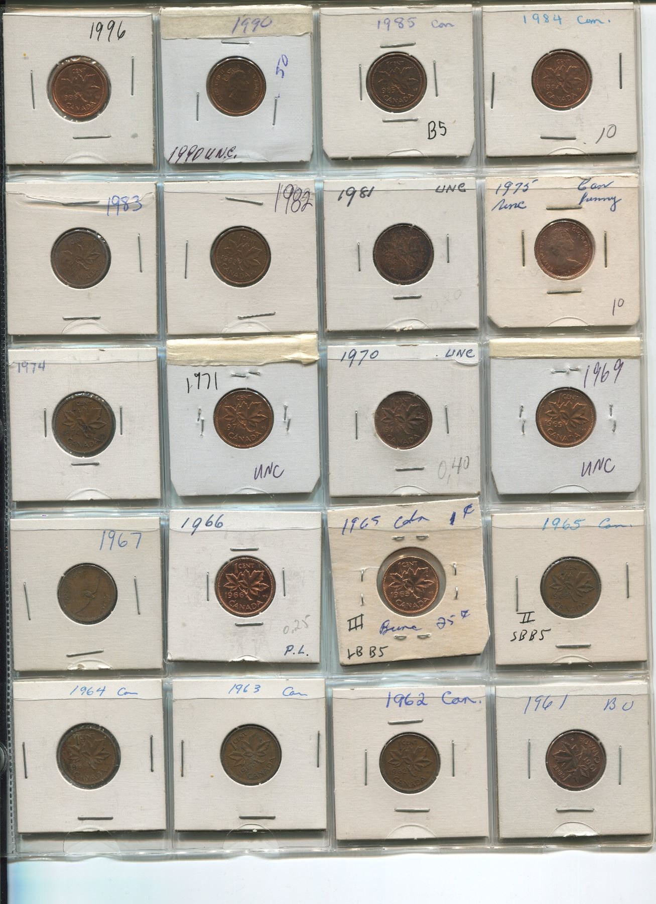 Binder of 1937 to 1996 various years (lots of UNC coins),68-Small Canadian penny,King George VI and Queen Elizabeth II