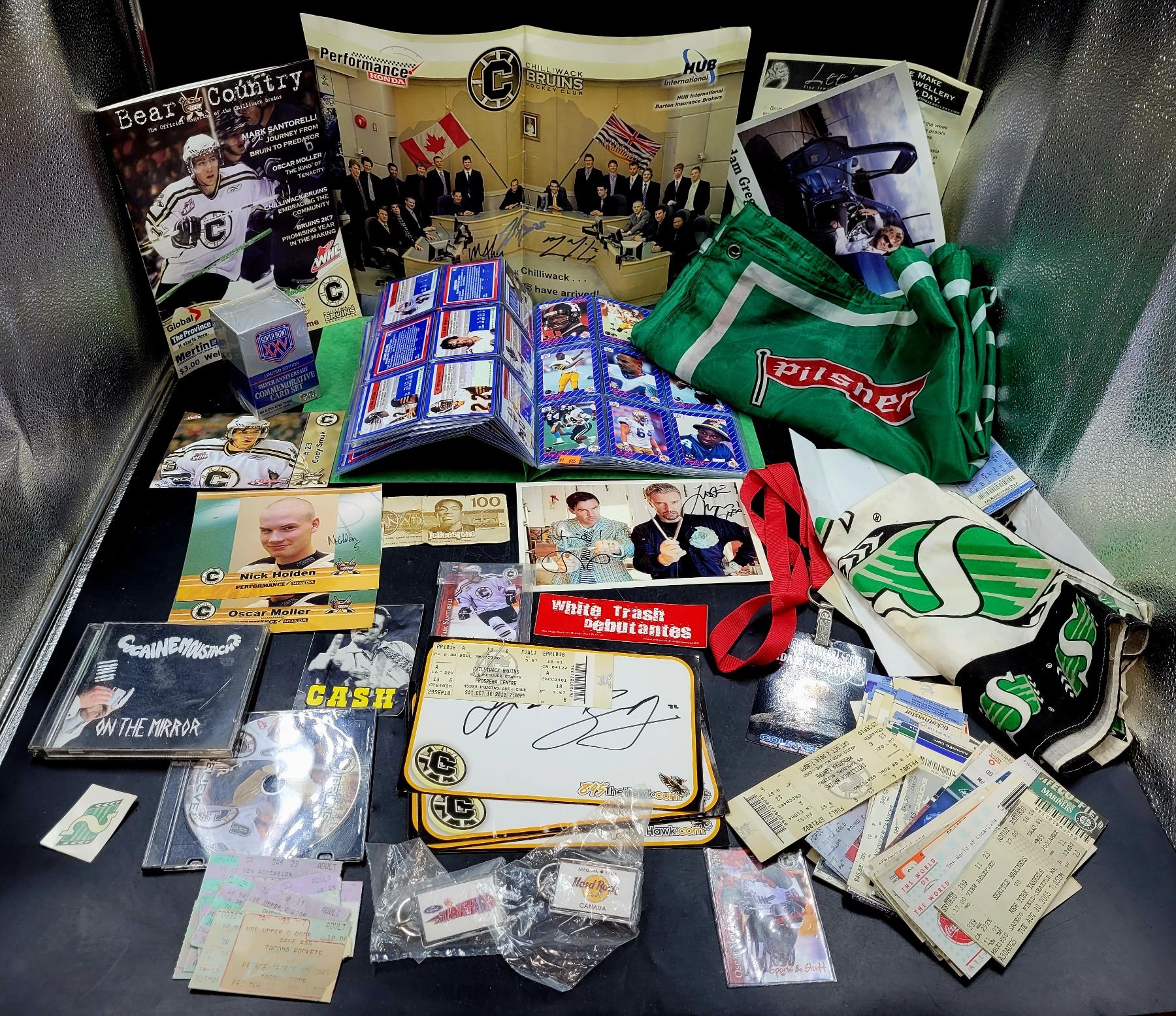 Binder of Football Cards, Autographed Memorabilia, Sporting Event Tickets, & More