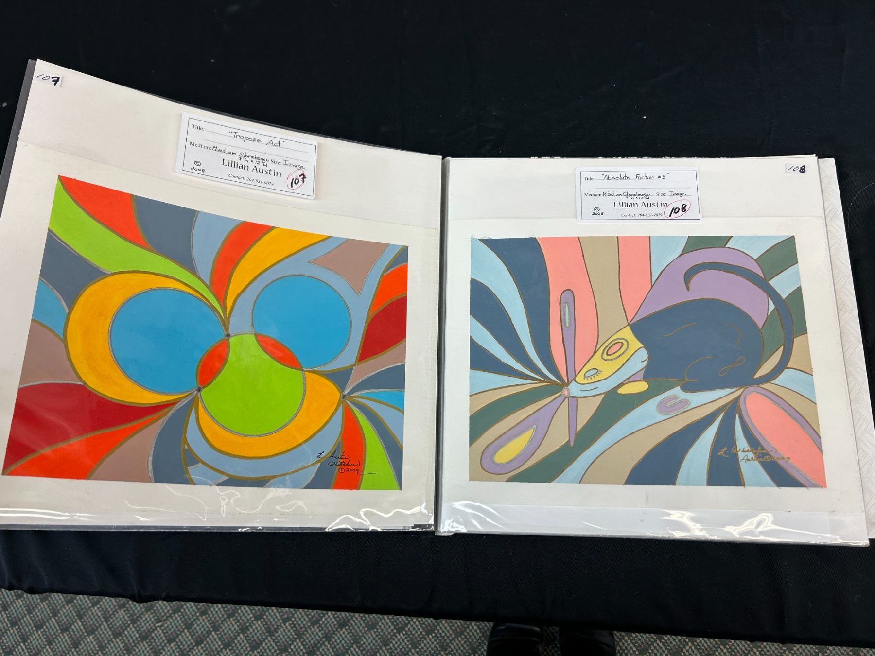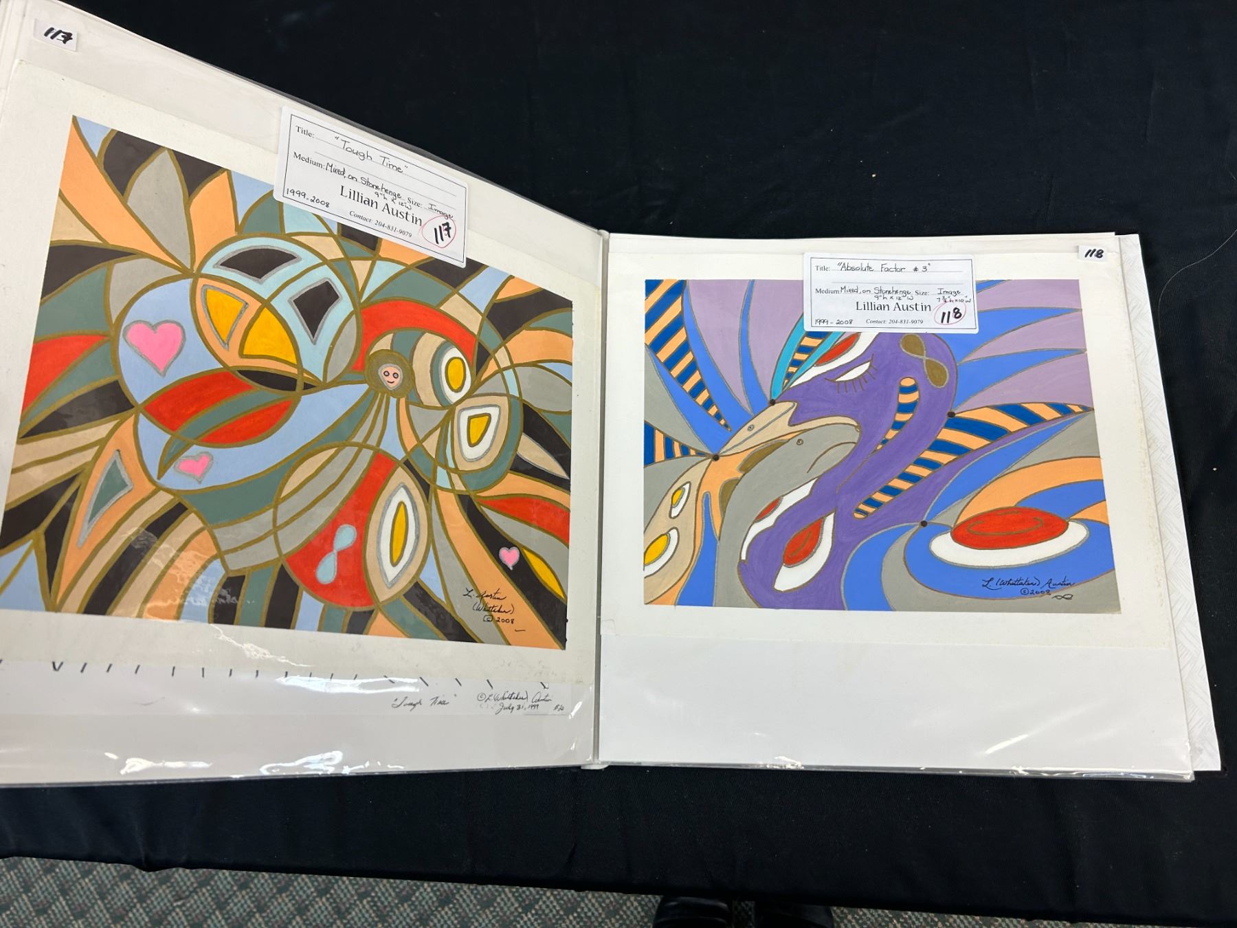 Binder of Lillian Austin Original Original Paintings on Paper, Organized 12" x 14"