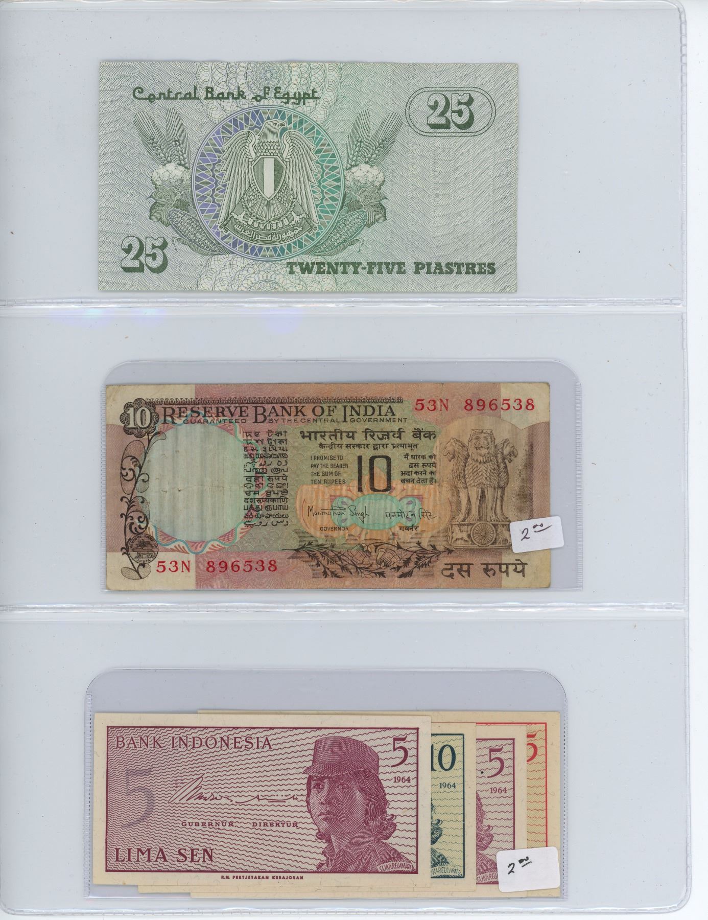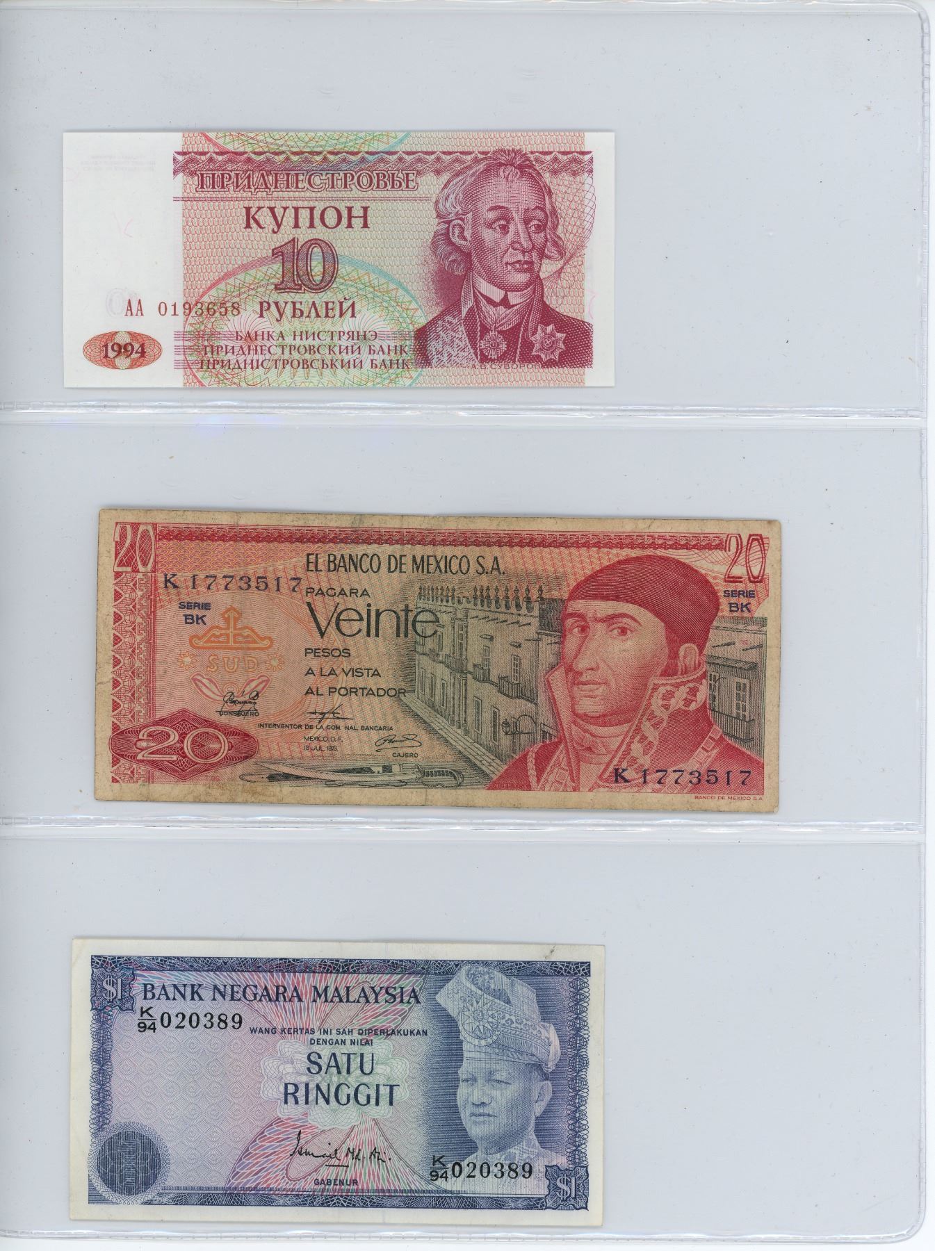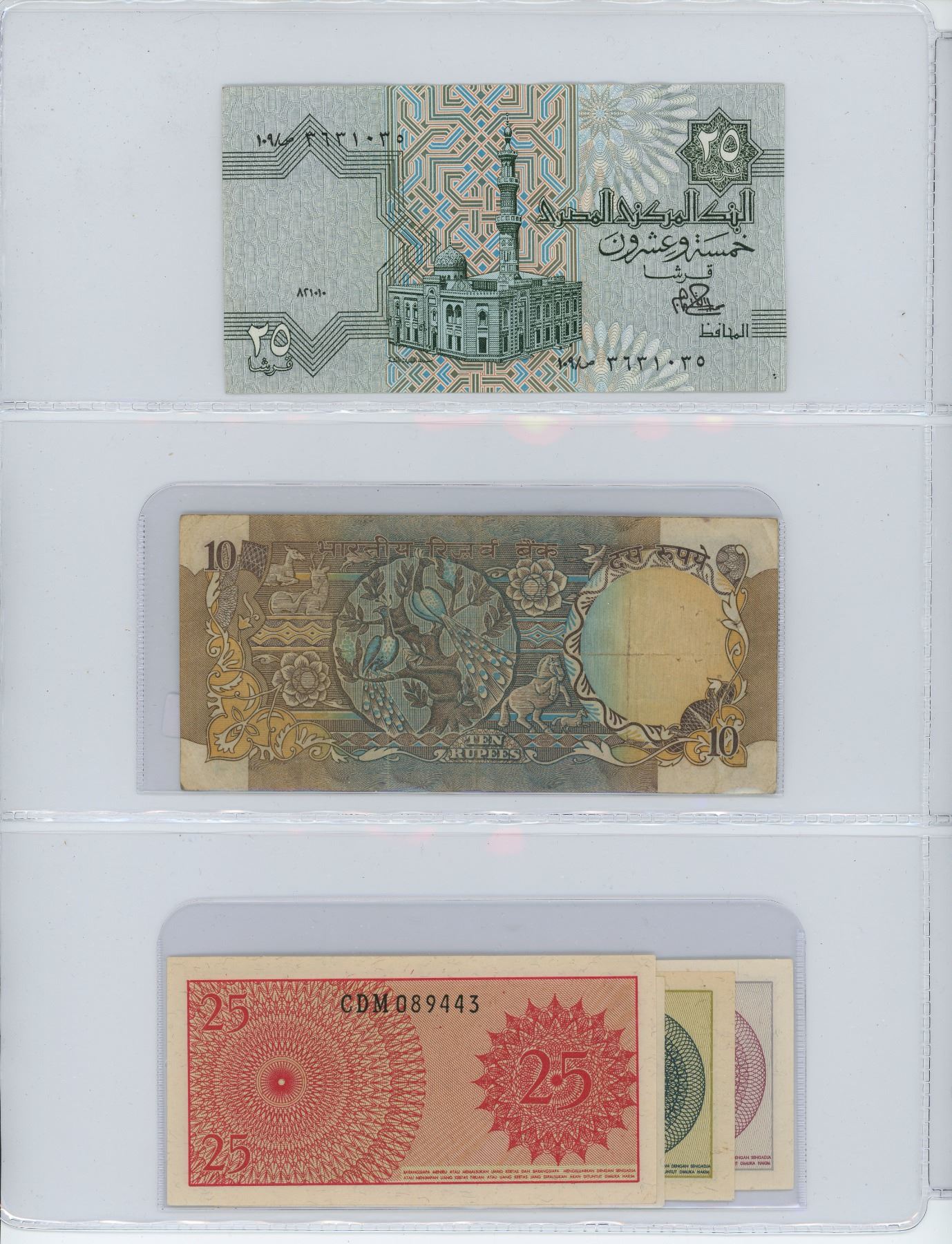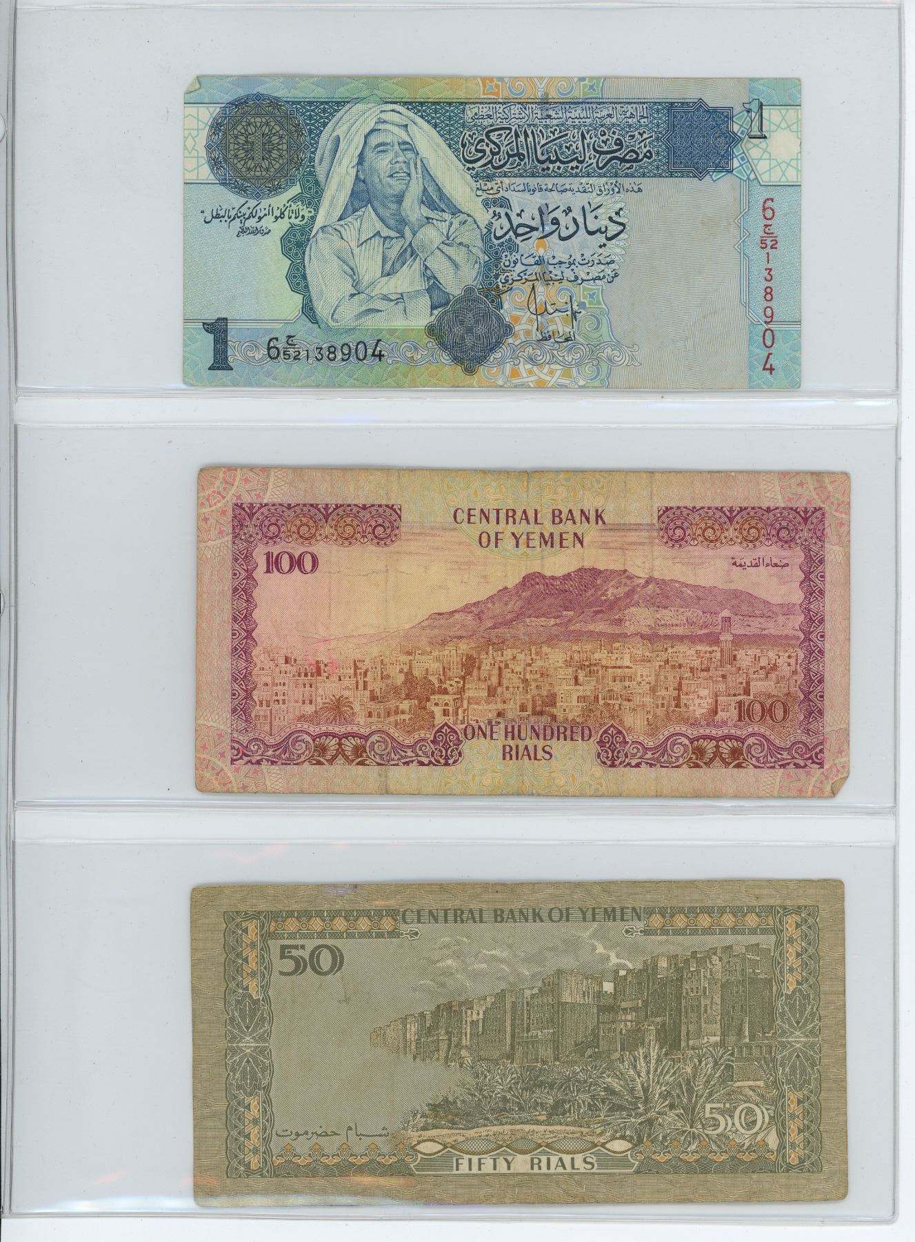 Binder of World Notes: 35 bills (approx. 16 countries incl. Guyana, Angola, Bahrain, Egypt, Nigeria & Yemen)