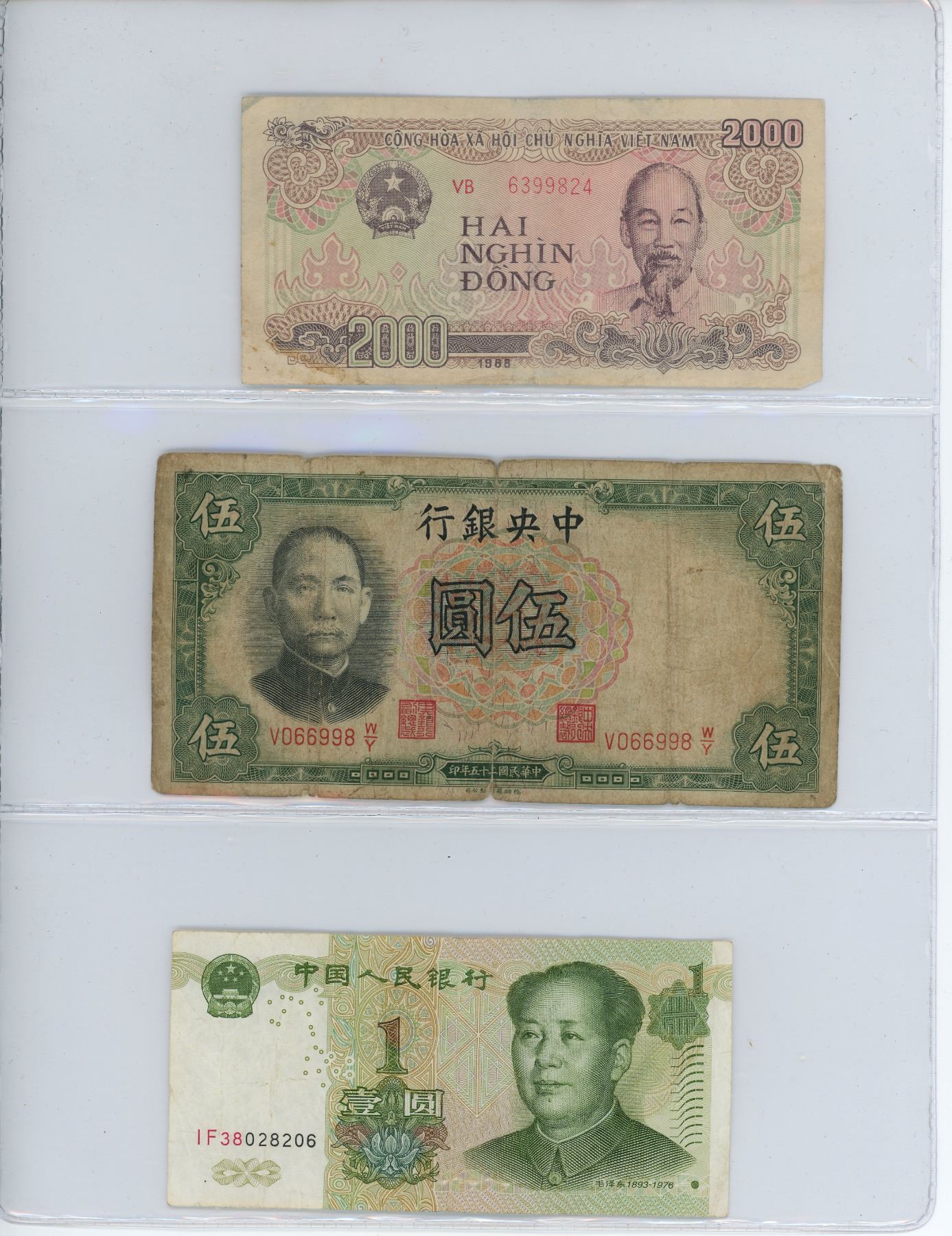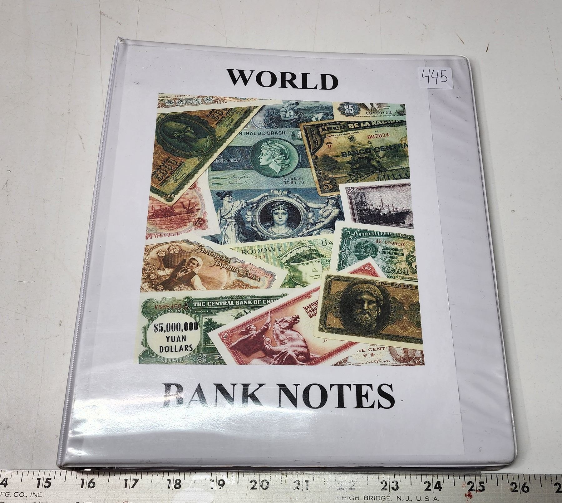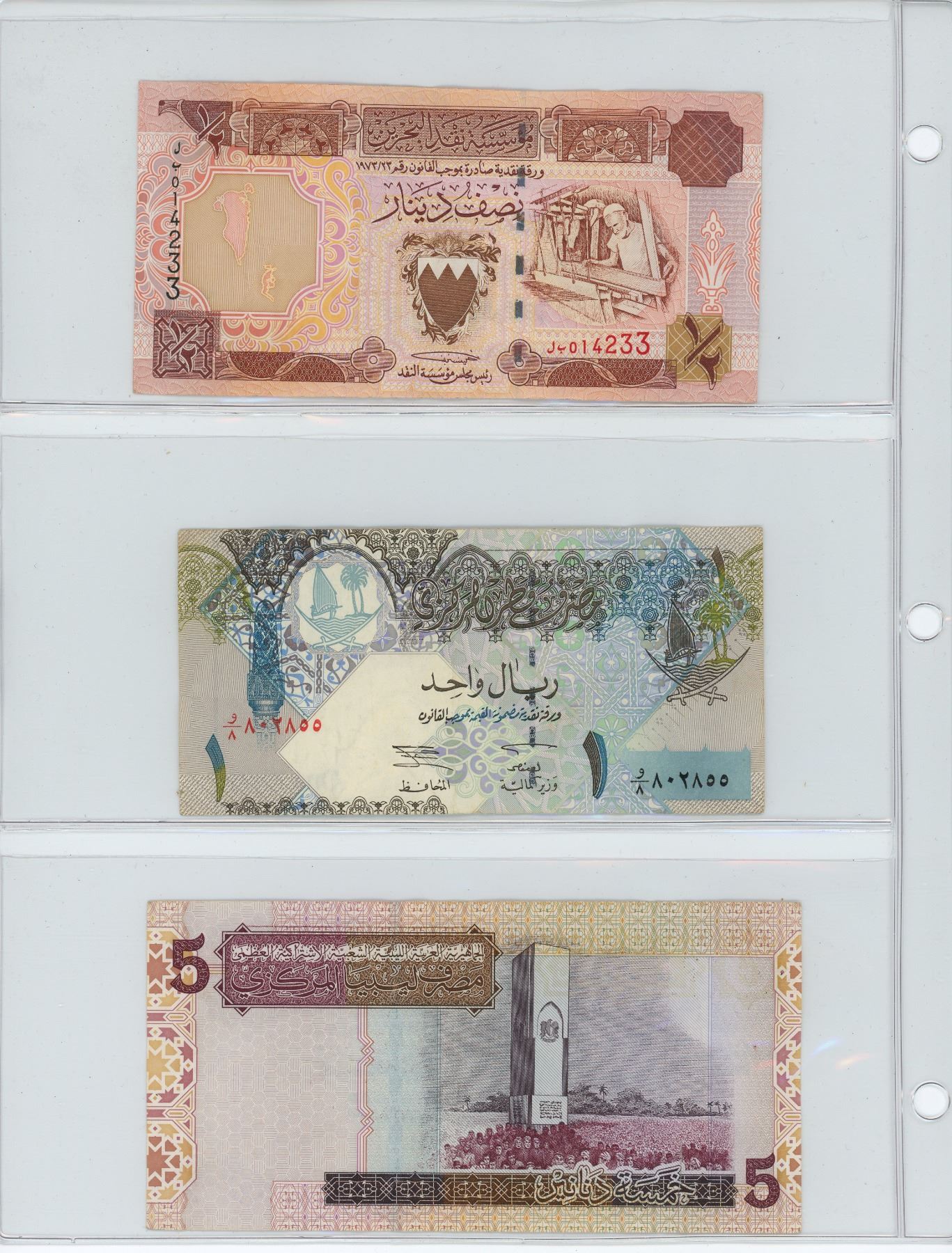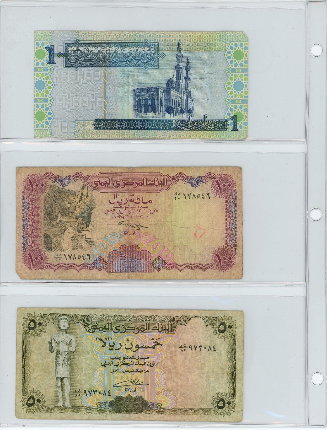 Binder of World Notes: 35 bills (approx. 16 countries incl. Guyana, Angola, Bahrain, Egypt, Nigeria & Yemen)